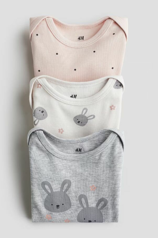 Боди H&M Зайчики, комплект из 3 шт., размер 92 (1,5-2 года), розовый, черный, белый, серый