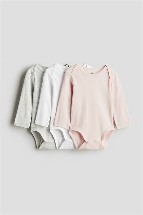 Купить Боди H&M Базовая коллекция, комплект из 3 шт., размер 92 (1,5-2 года), розовый, белый, серый