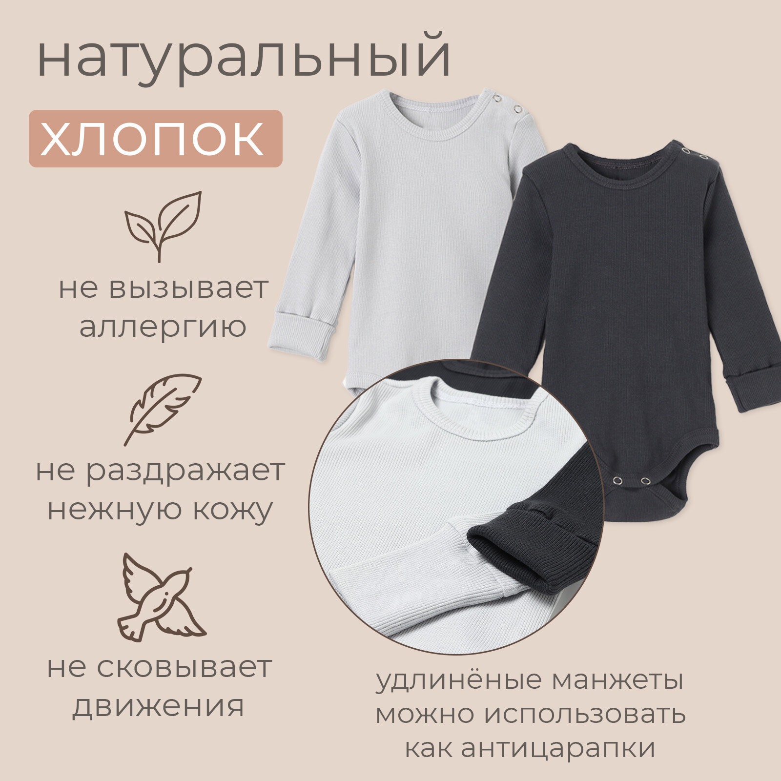 СохранитьБоди Minaku, комплект из 2 шт., размер 68/74, серый интересное: