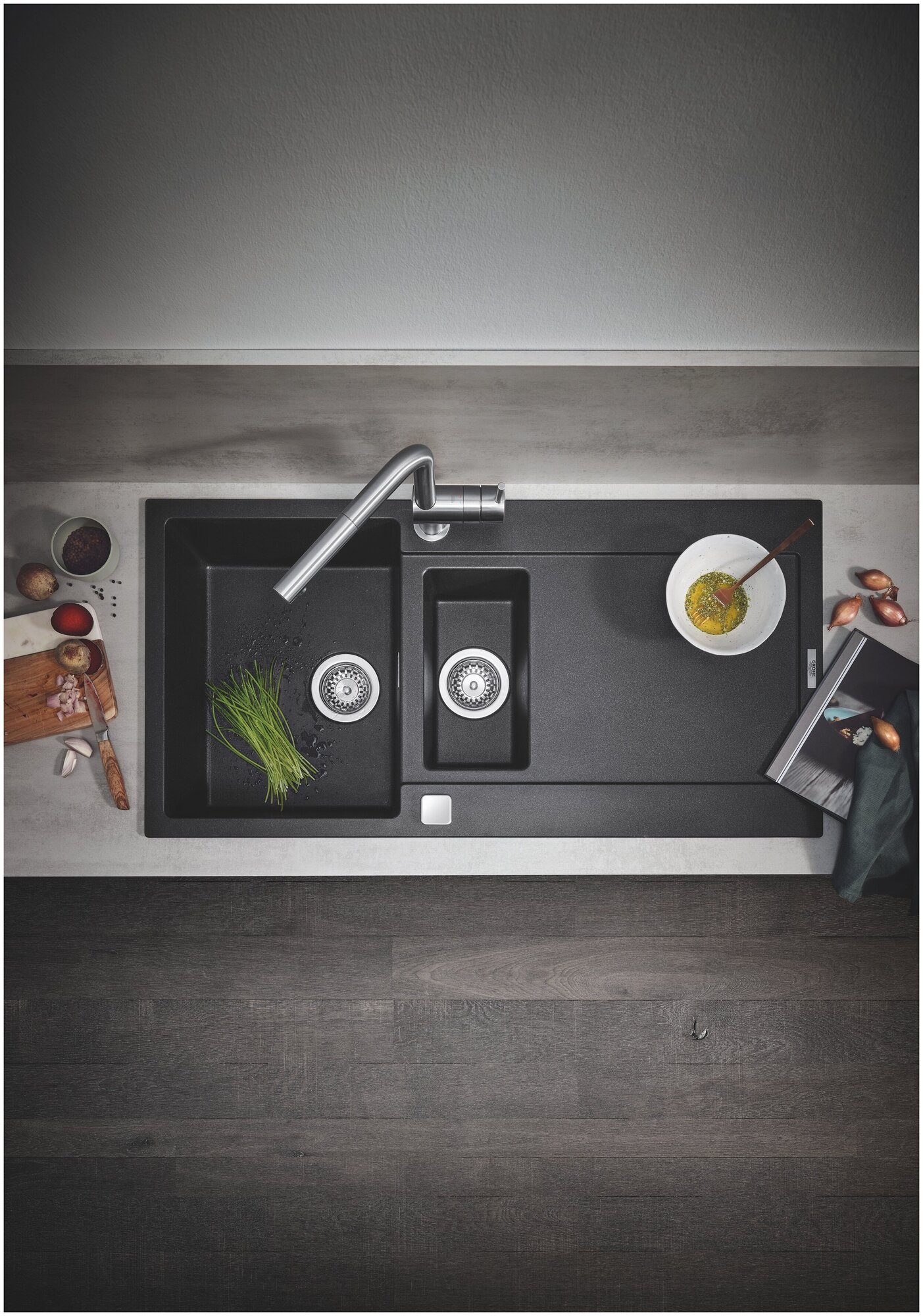 Мойка GROHE K500 с 1,5 чашей, 1000 x 500 мм, черный гранит (31646AP0)