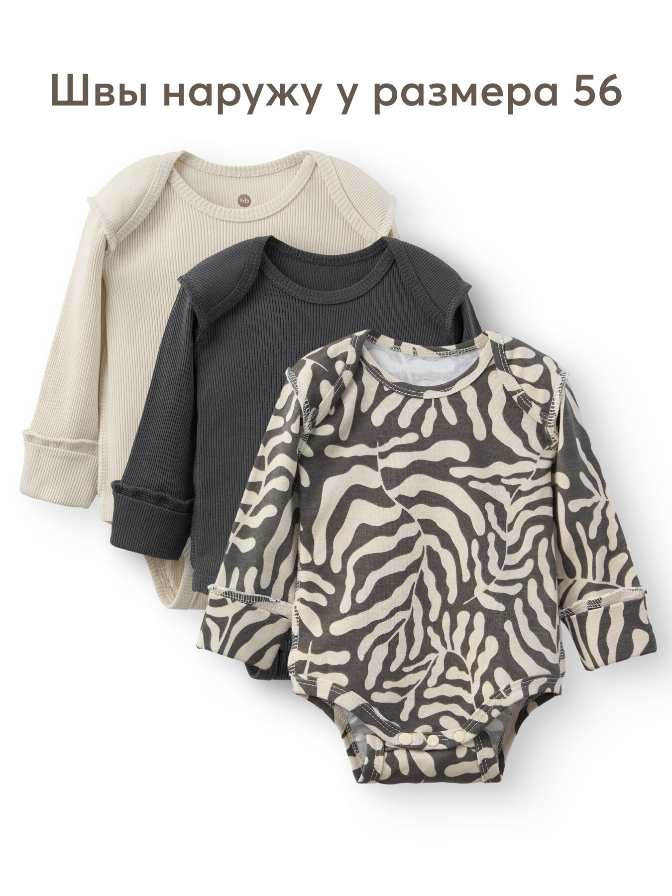 Боди Happy Baby Весна-лето 2025, комплект из 3 шт., размер 56, серый, бежевый, черный