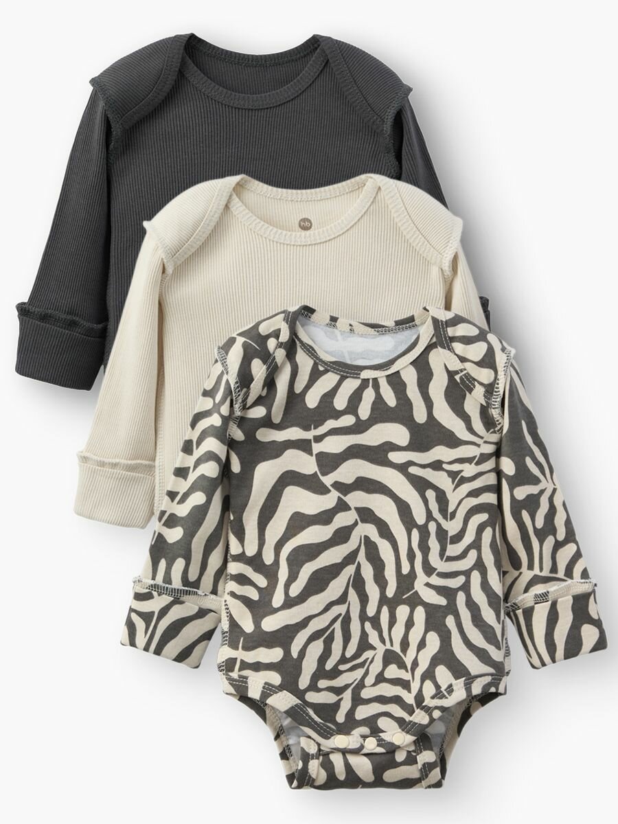 Купить Боди Happy Baby Весна-лето 2025, комплект из 3 шт., размер 68, серый, бежевый, черный