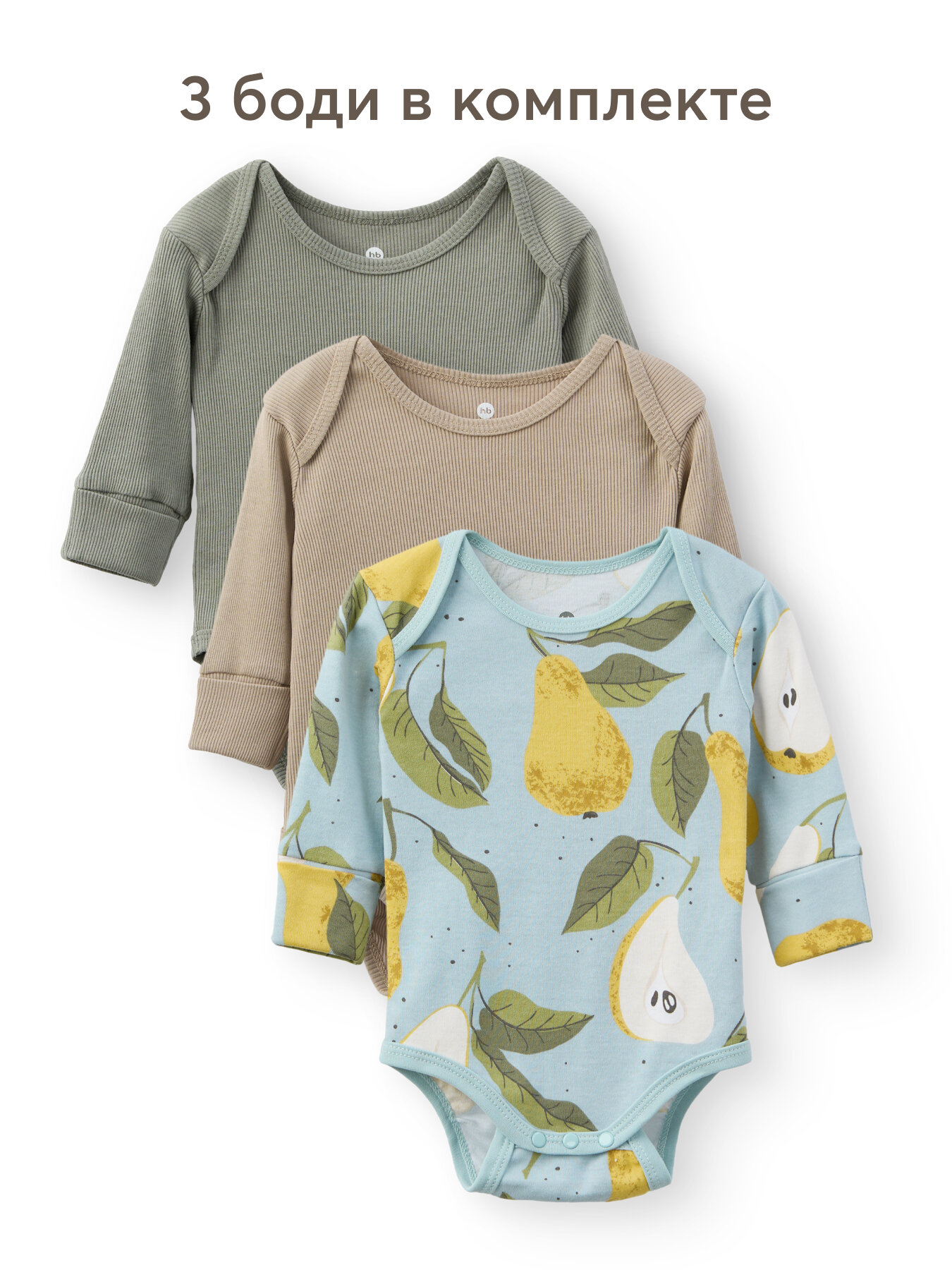 Боди Happy Baby Весна-лето 2025, комплект из 3 шт., размер 62, груша