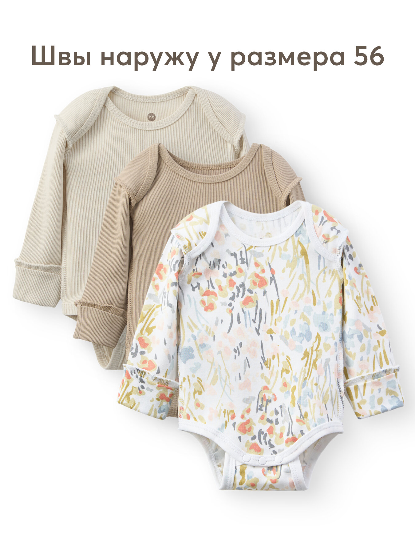 Боди Happy Baby Весна-лето 2025, комплект из 3 шт., размер 56, цветы