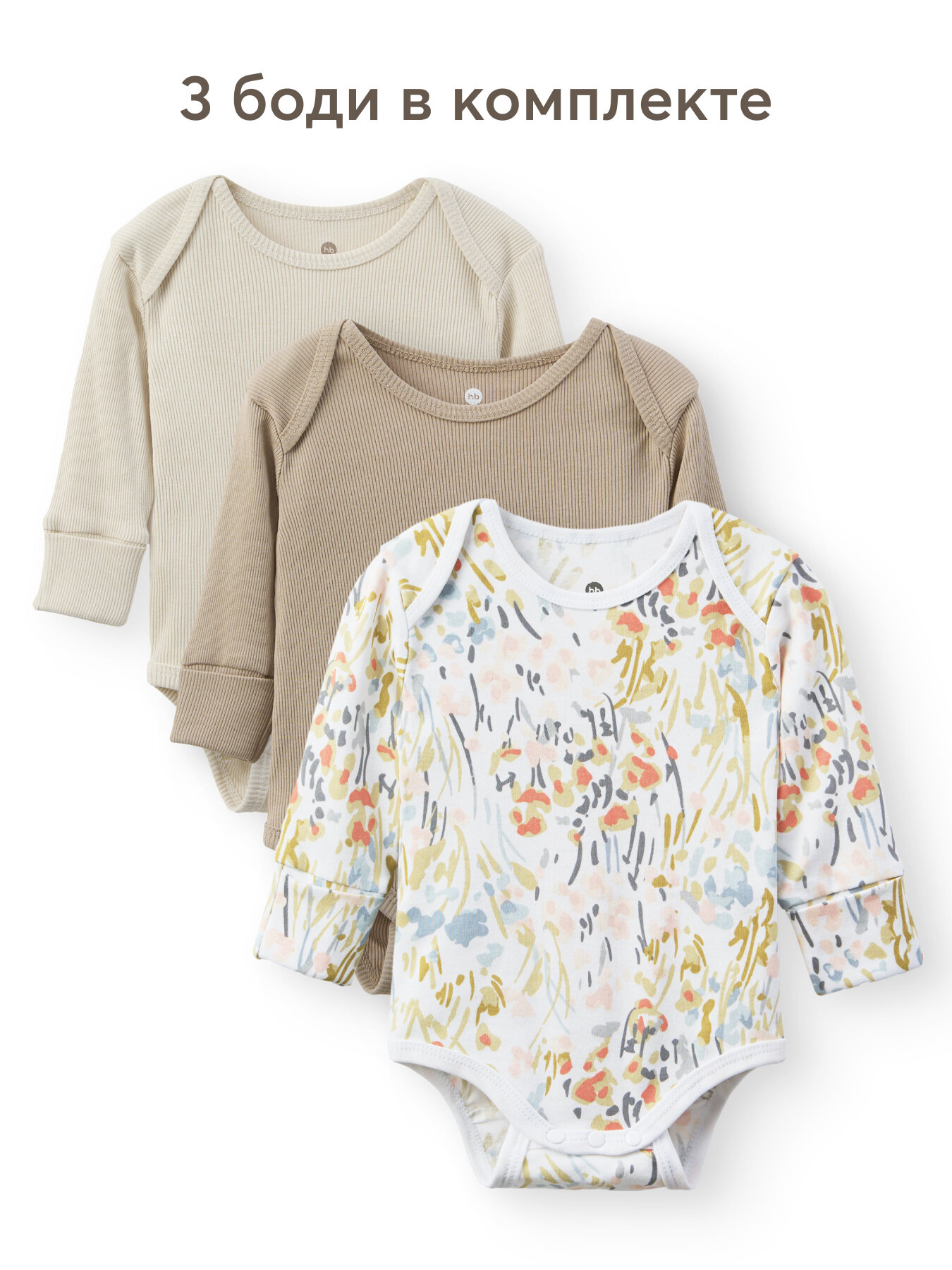 Боди Happy Baby Весна-лето 2025, комплект из 3 шт., размер 68, груша
