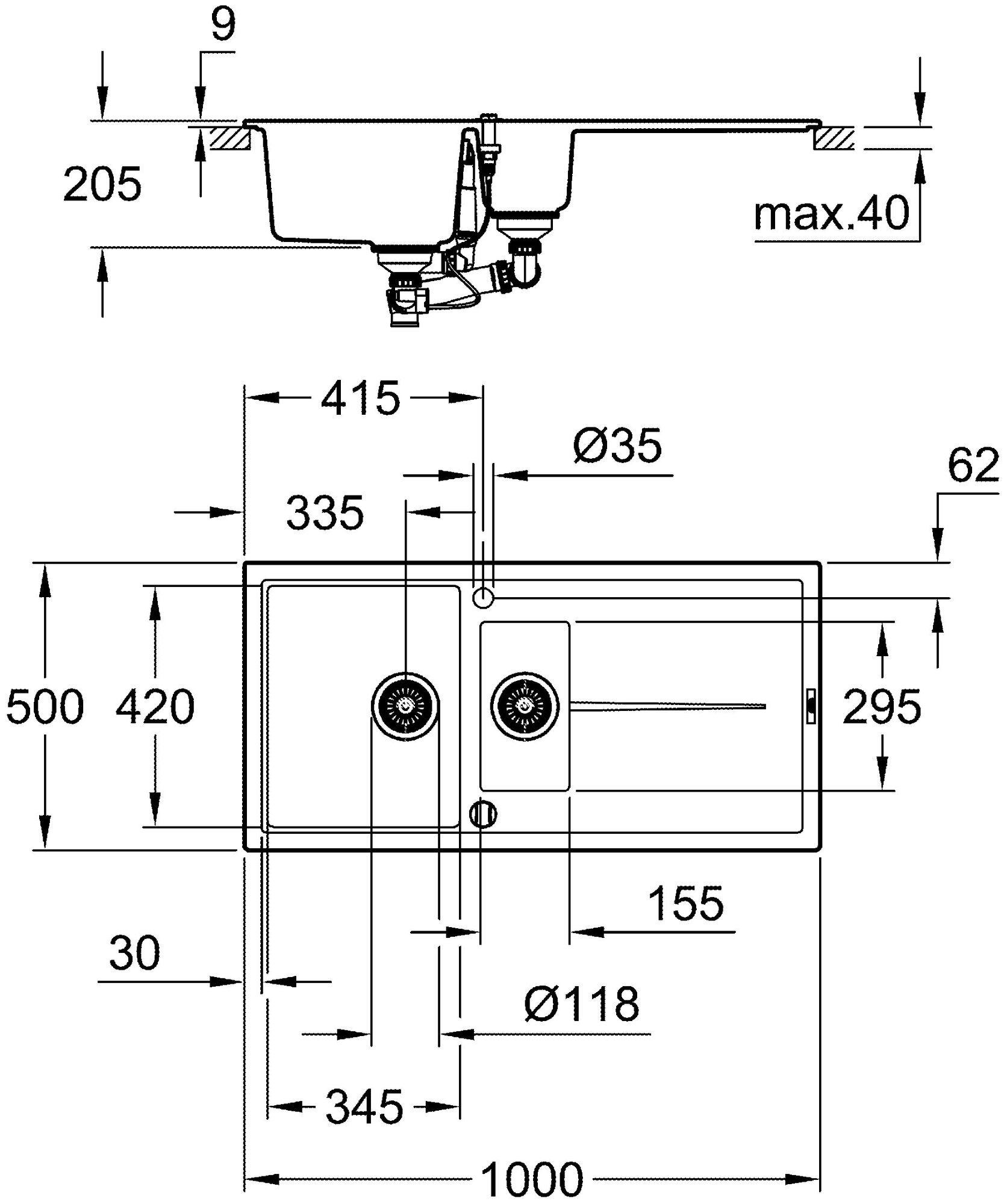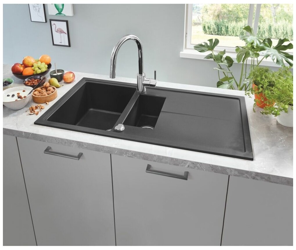 Мойка GROHE K400 с 1,5 чашей, 1000 x 500 мм, черный гранит (31642AP0)