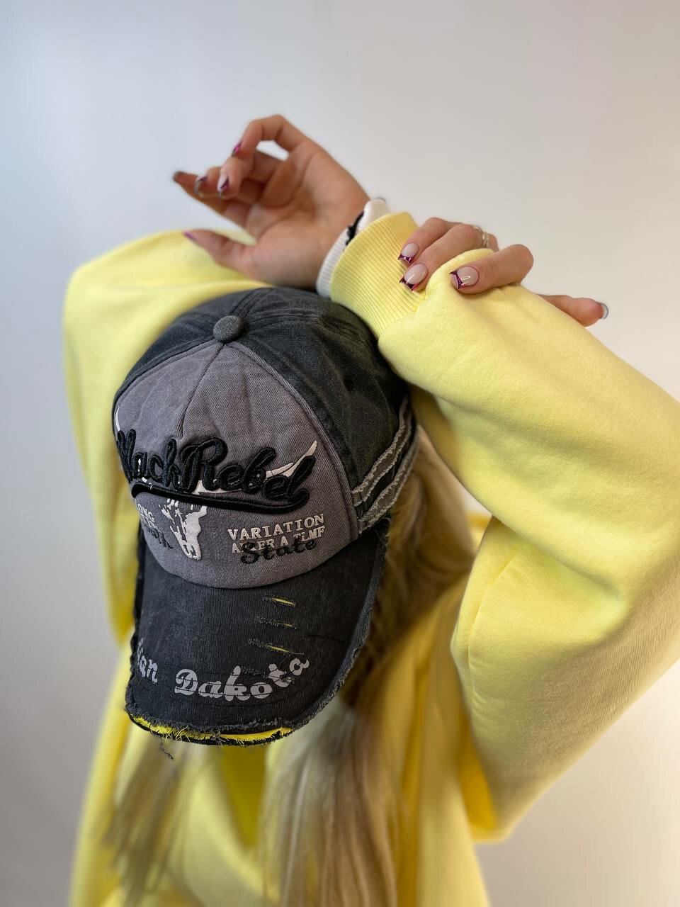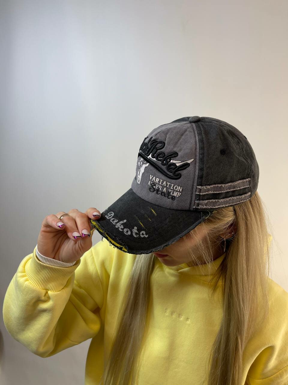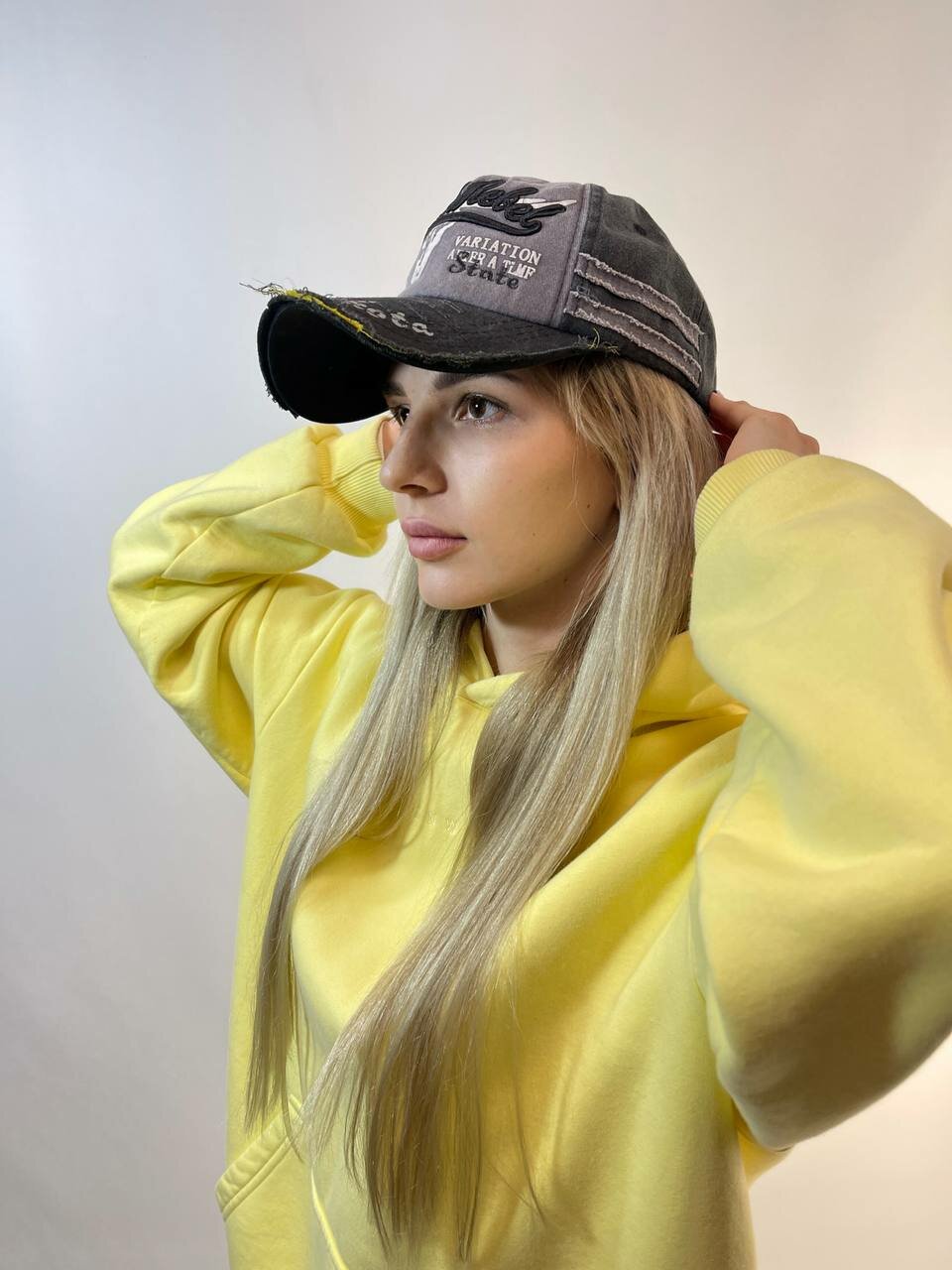 Бейсболка КОСЫНКА для женщин, размер регулируемый, серый, черный