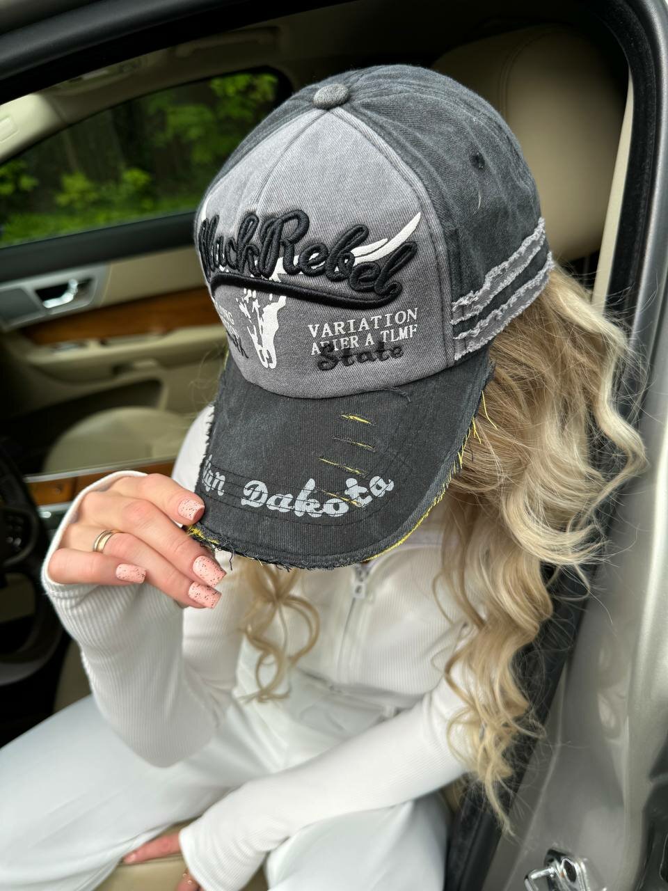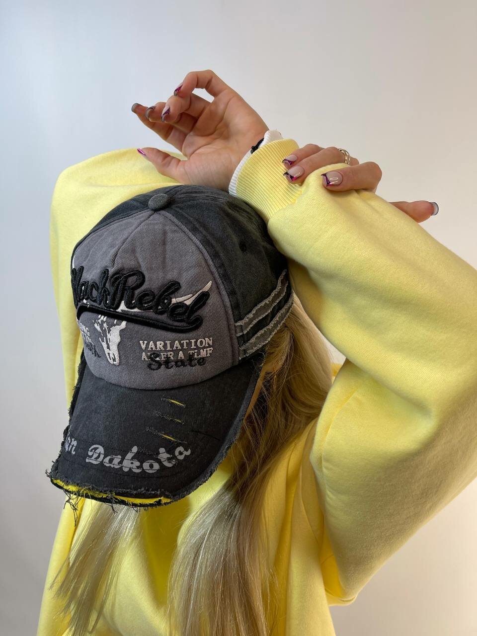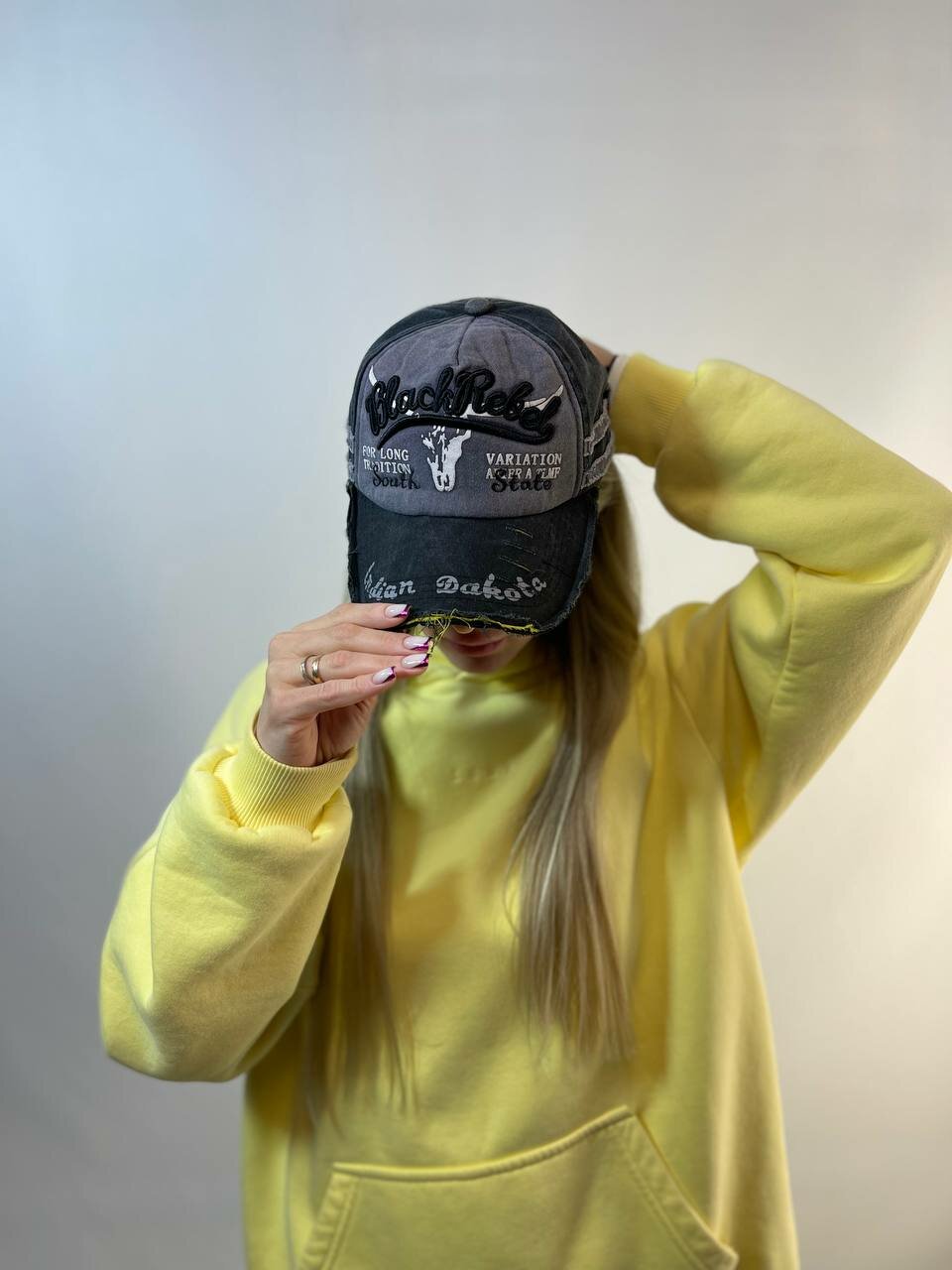 Бейсболка КОСЫНКА для женщин, размер регулируемый, серый, черный