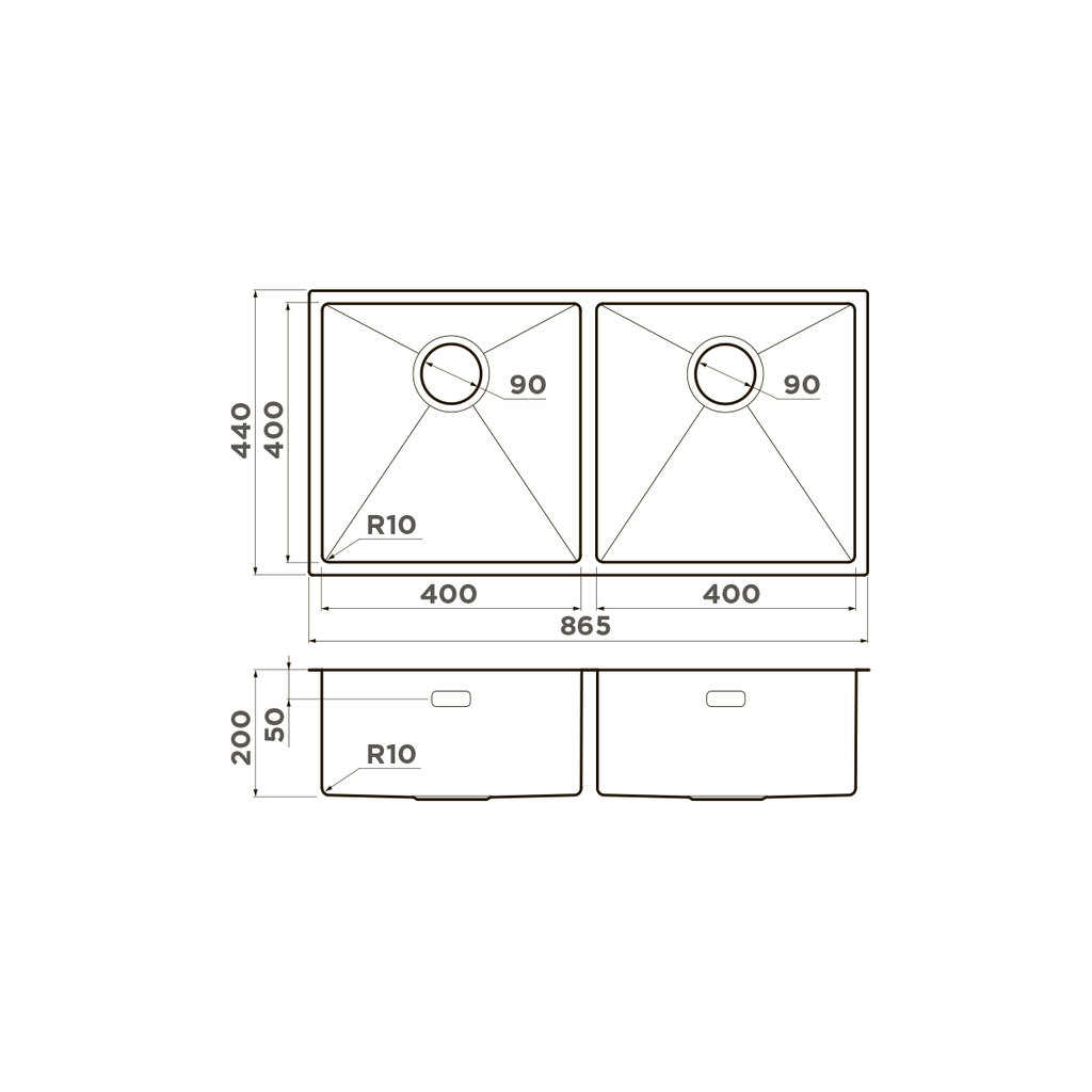 Кухонная мойка OMOIKIRI Taki 86-2-GM 86,5х44см нерж.сталь/вороненая сталь