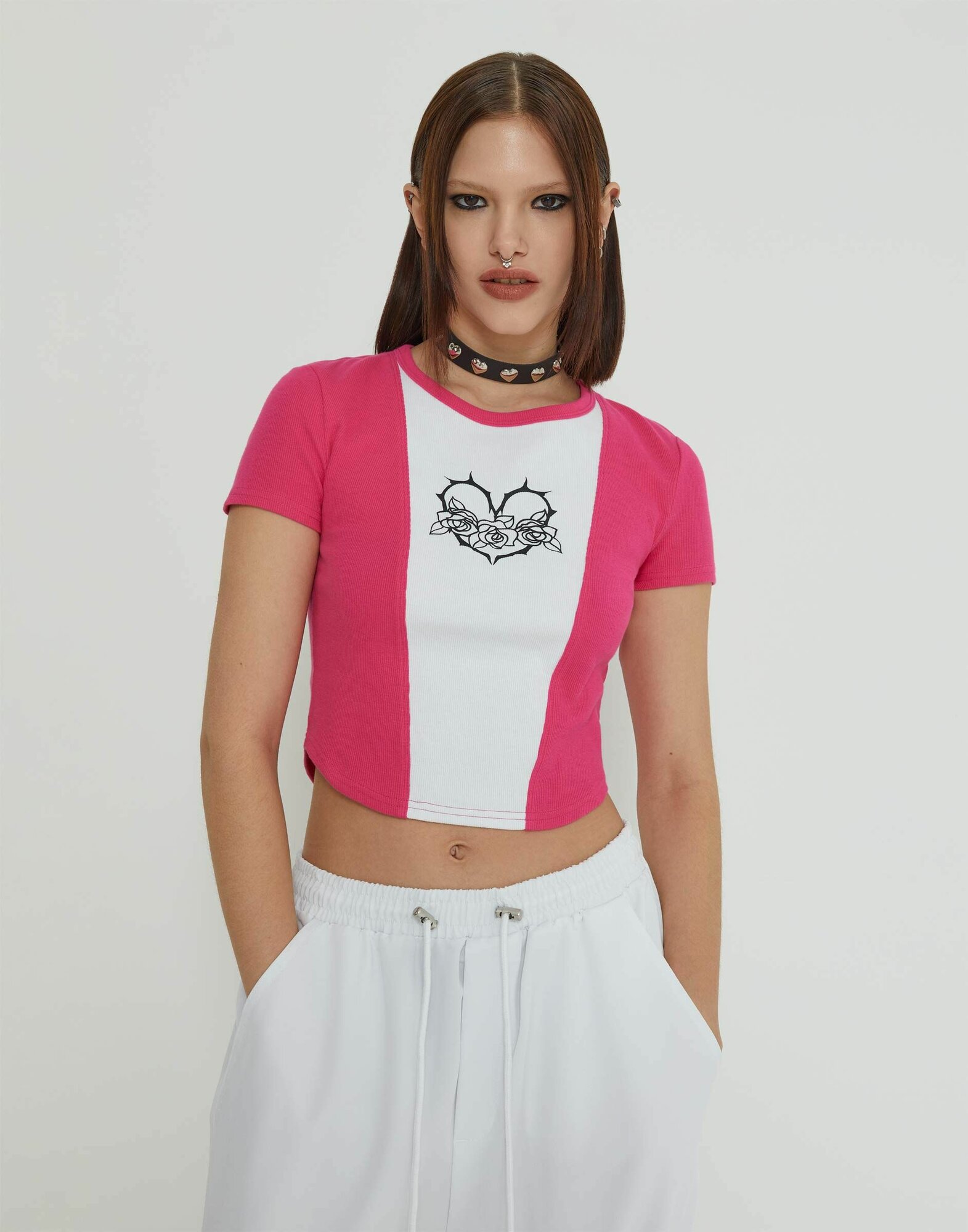 Кроп-топ Gloria Jeans, размер 18+/170, розовый/белый