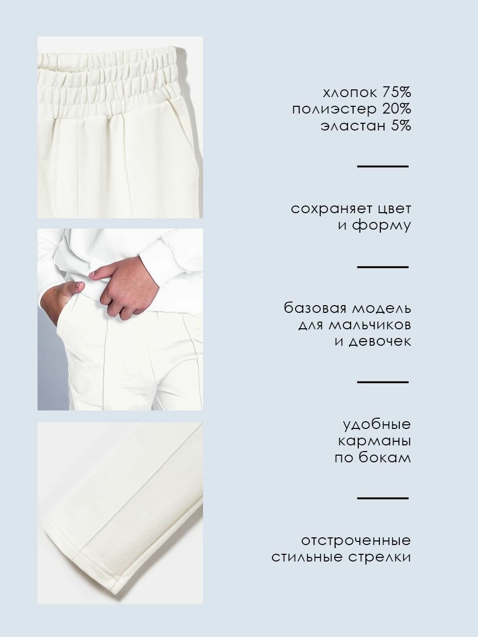 Брюки утеплённые Winkiki повседневные школьные со стрелкой, размер 128, , молочный