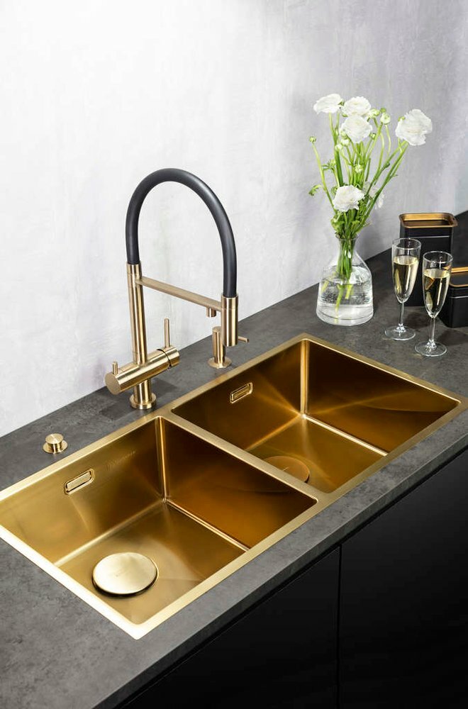 Кухонная мойка Paulmark Twin 78 PM237844-BG Брашированное золото