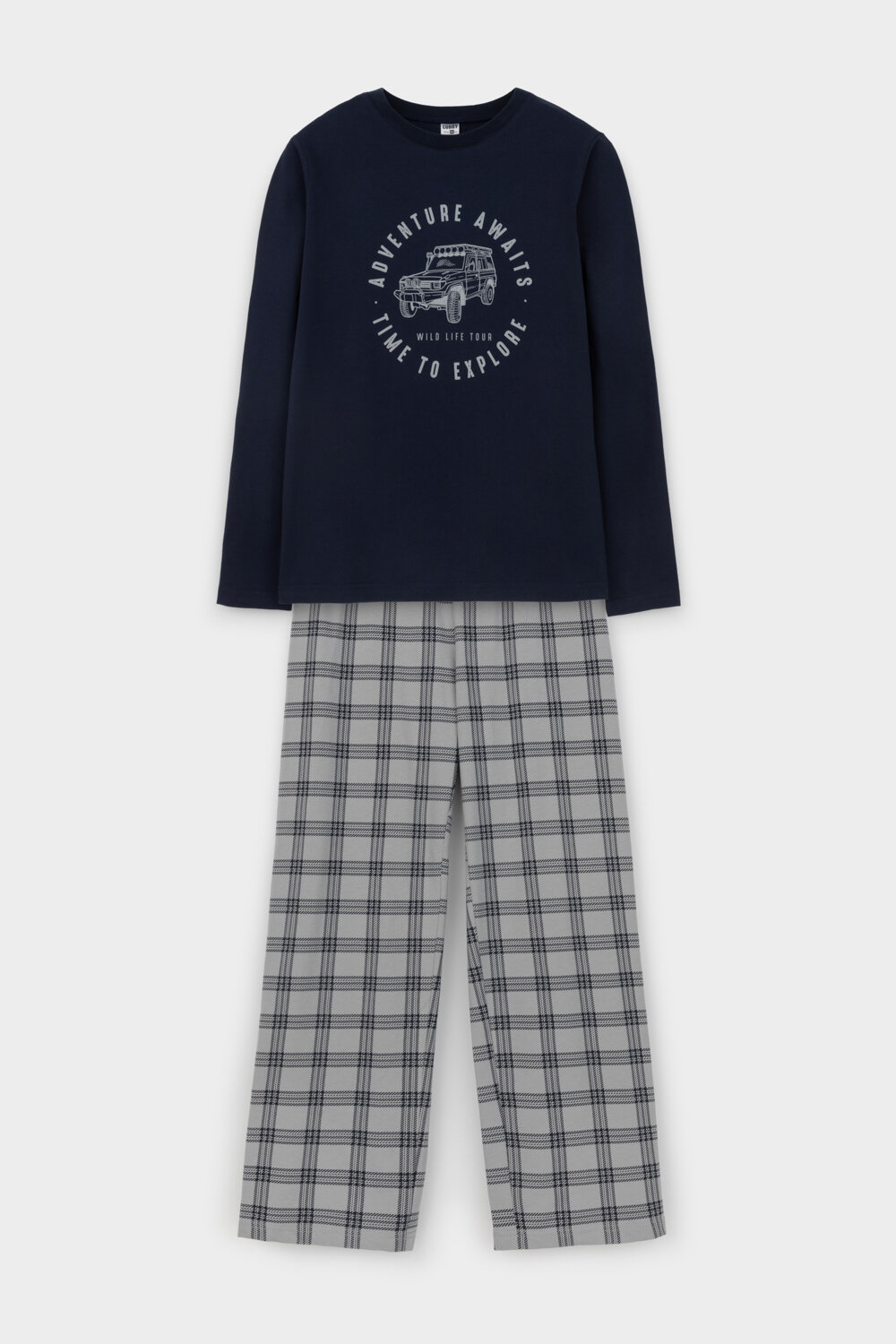 Пижама CUBBY КБ 2832/синяя волна,текстильная клетка, размер 80/152, синий, серый