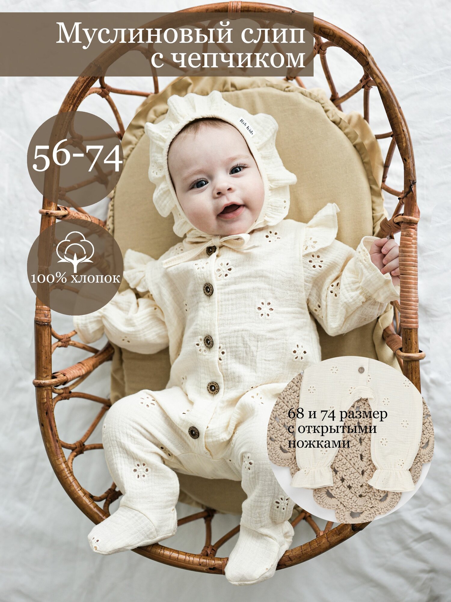 Комплект одежды Bah Kids, размер 62, бежевый интересное: