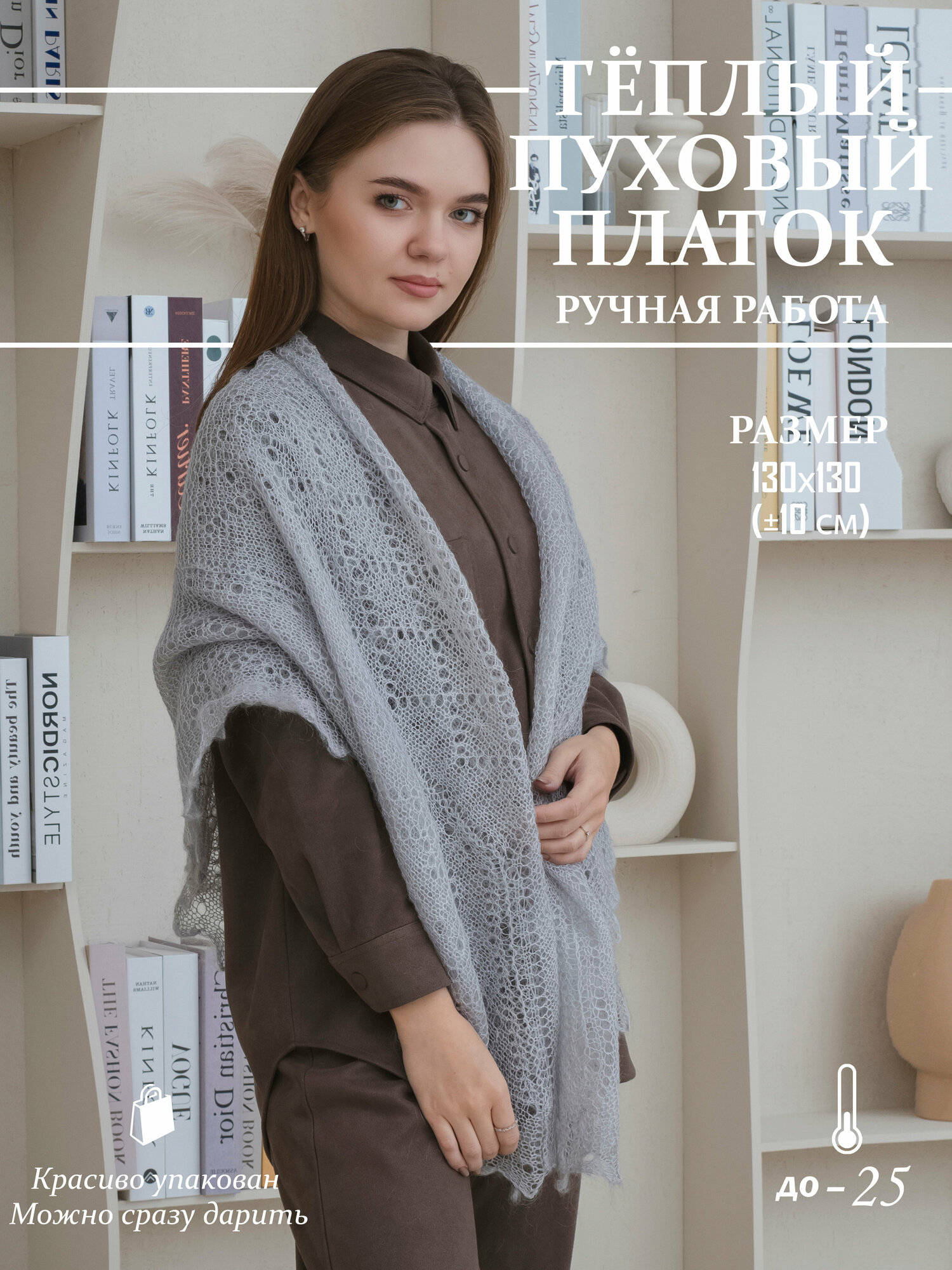 Платок Легендарные Пуховые Платки для женщин,130х130 см, серый интересное: