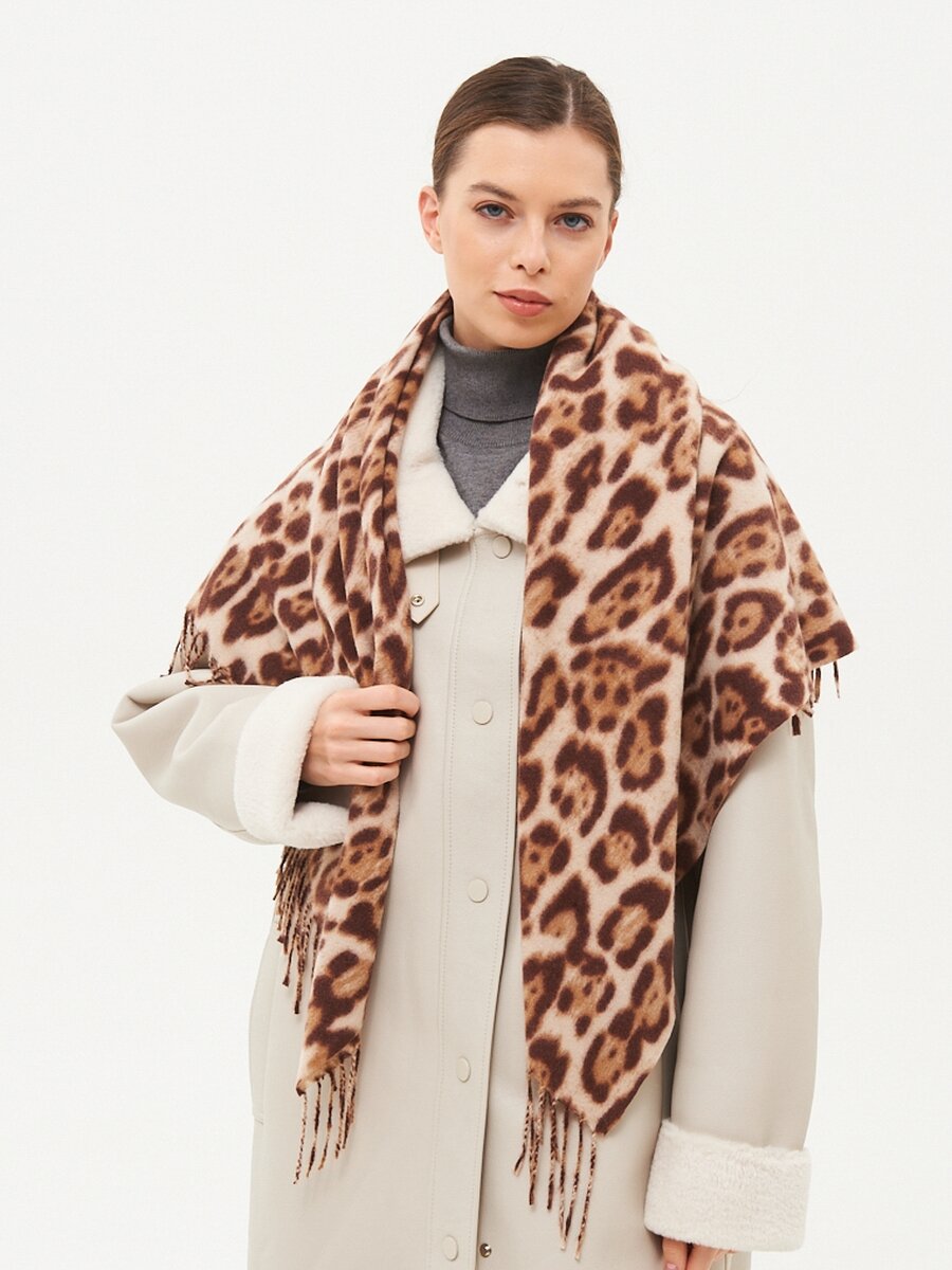 Платок Павловопосадская платочная мануфактура для женщин,65х65 см, коричневый