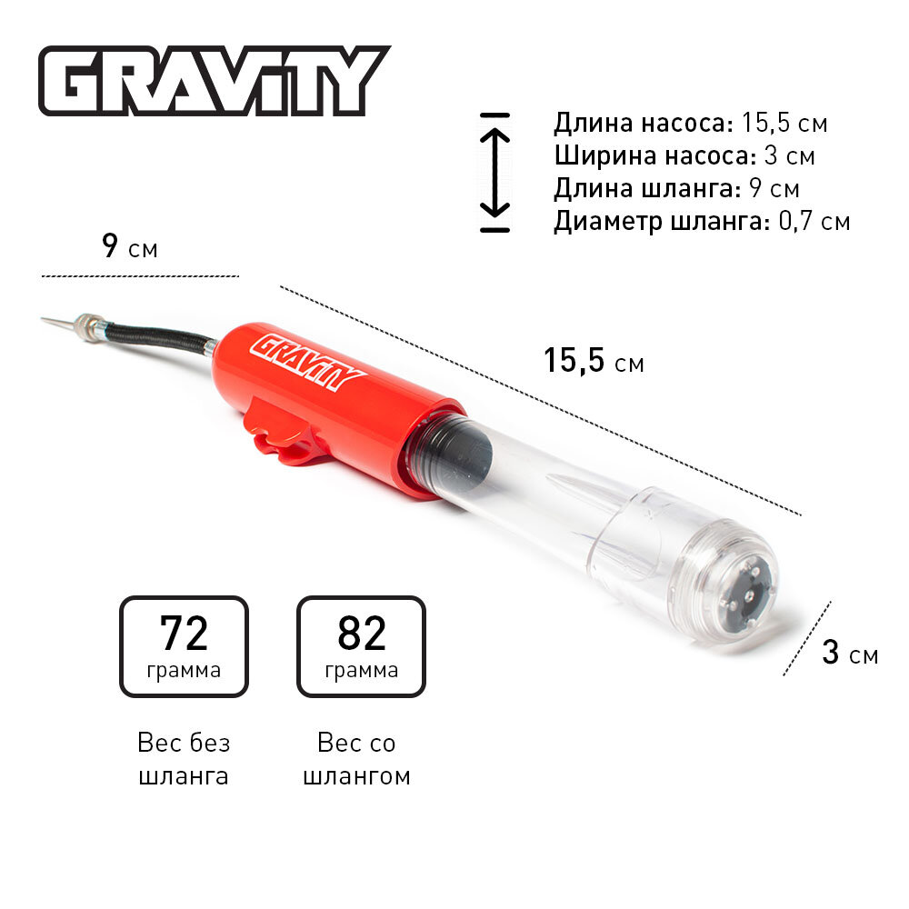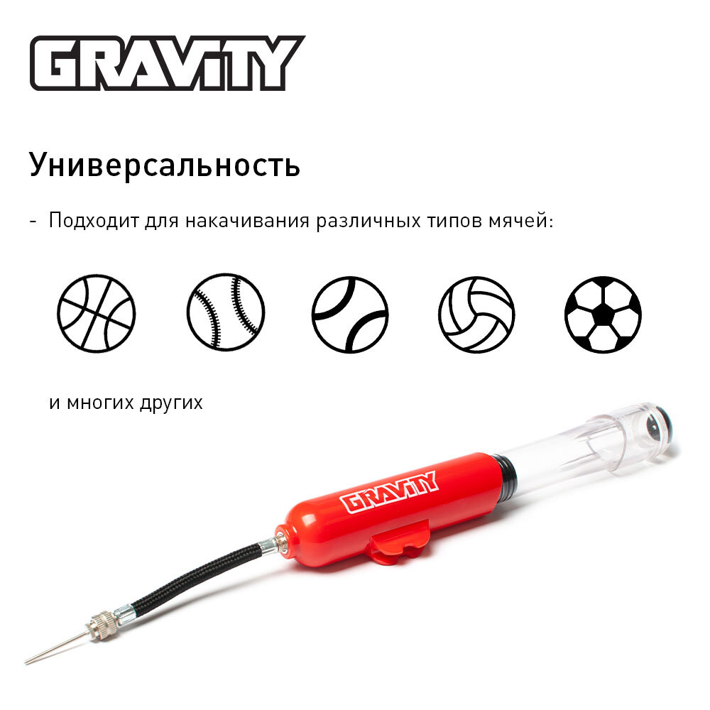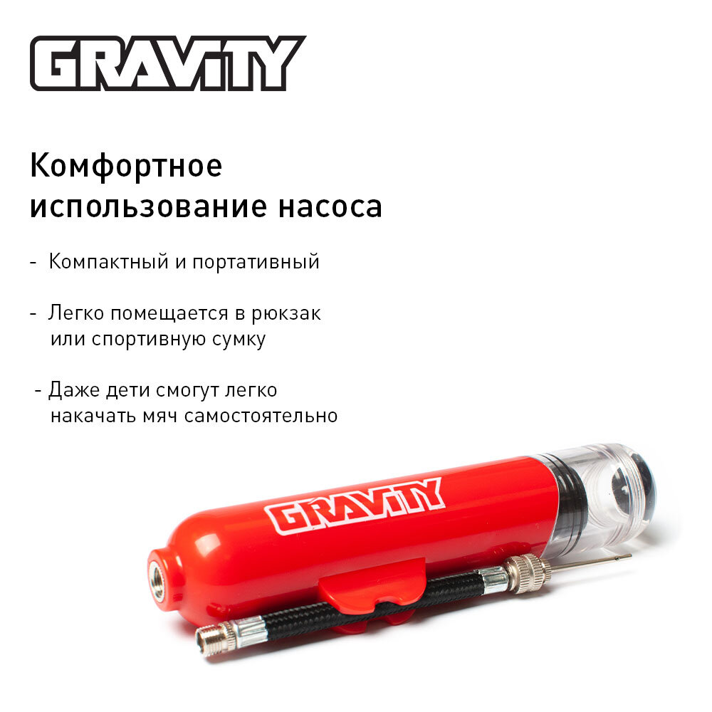 Компактный ручной насос Gravity для футбольного, басктобольного, волейбольного мяча, с иглой, 16см, красный интересное: