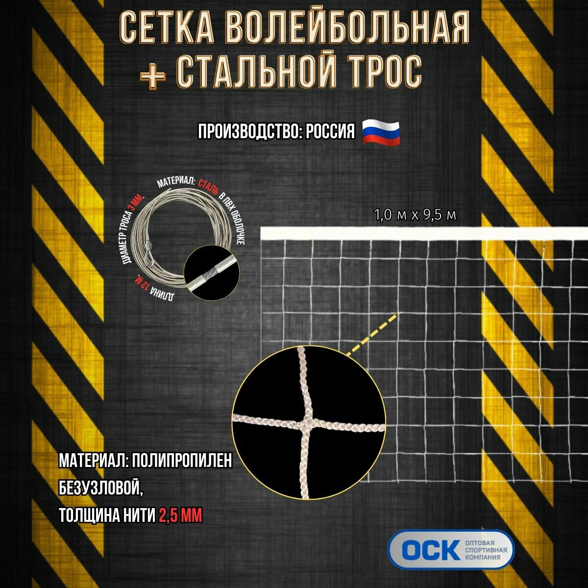 Ниже Вы можете прочитать отзывы на Волейбольная сетка со стальным тросом, ячейка 100х100мм, нить 2,5мм, размер 9.5х1.0м, ознакомится с подробными характеристиками, посмотреть интересные обзоры и фотографии на Волейбольная сетка со стальным тросом, ячейка 100х100мм, нить 2,5мм, размер 9.5х1.0м.