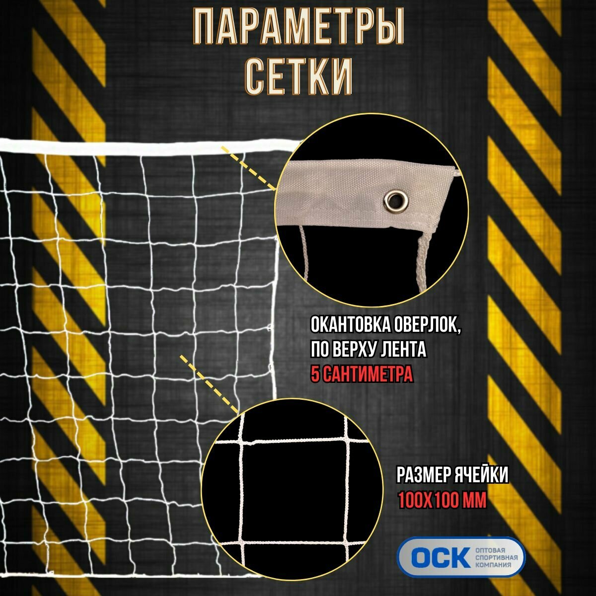 Волейбольная сетка со стальным тросом, ячейка 100х100мм, нить 2,5мм, размер 9.5х1.0м интересное: