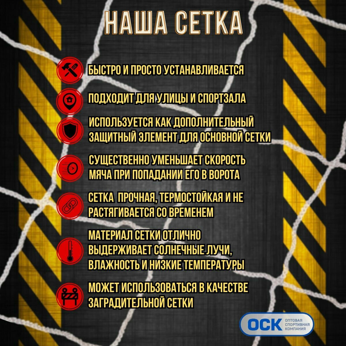 Сетка-гаситель для гандбольных/мини-футбольных ворот, ячейка 100х100мм, нить 2.5мм, размер 2.0х3.0м интересное: