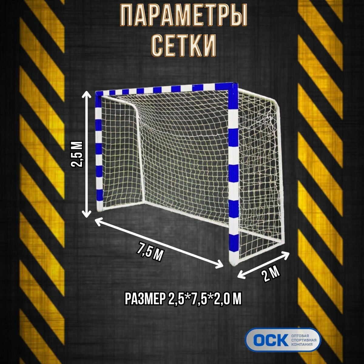 Сетка футбол, ячейка 100х100мм, нить 5мм, размер 2.5х7.5.2.0м