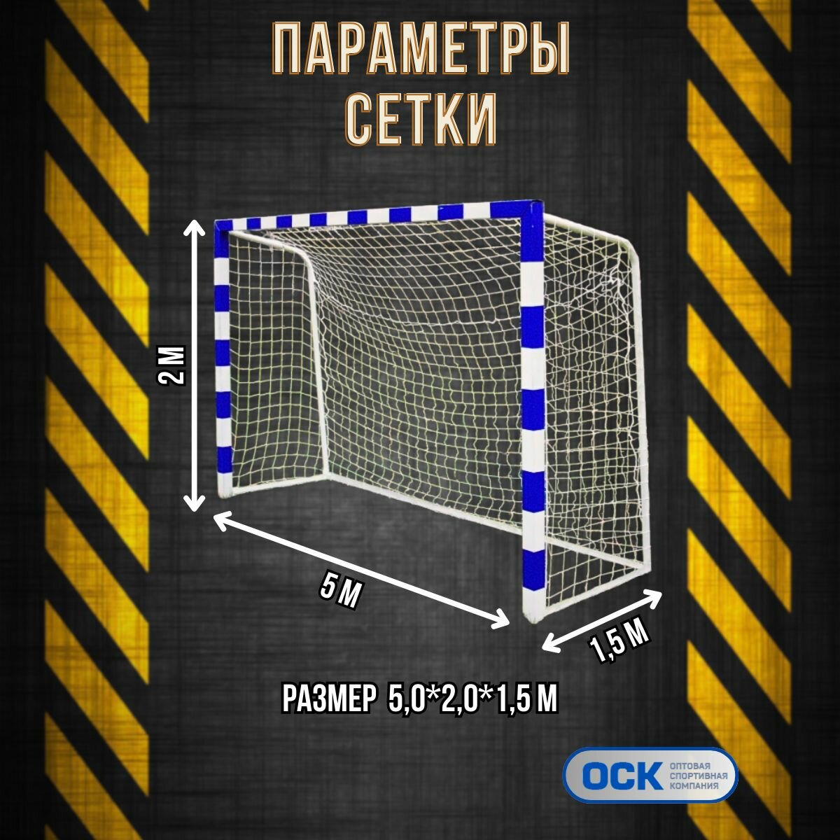 Сетка футбол, ячейка 100х100мм, нить 5мм, размер 2.5х7.5.2.0м
