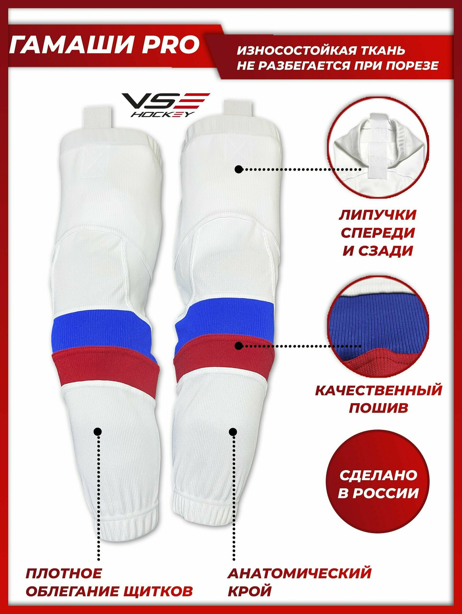 Гамаши хоккейные VseHockey базовая коллекция, размер YTH - 50 см, красный, белый, синий интересное: