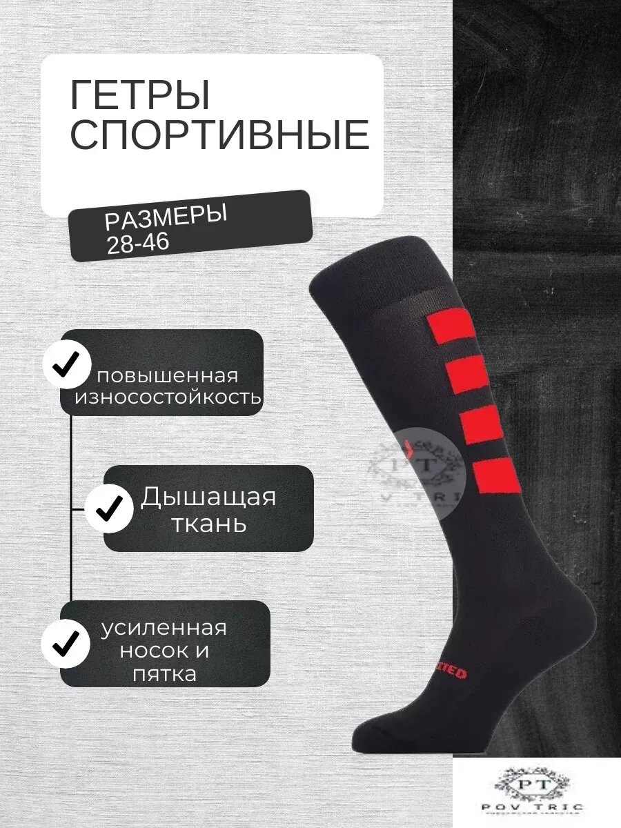 Гетры спортивные POV TRIC Базовая коллекция, размер 33-34, черный/красный интересное: