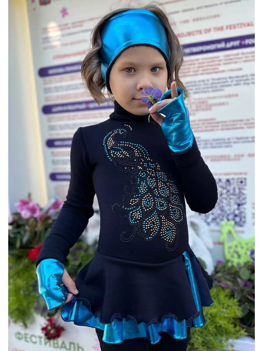 Костюм для фигурного катания Olivi Classic Утепленный комбинезон, размер XXS, синий, зеленый