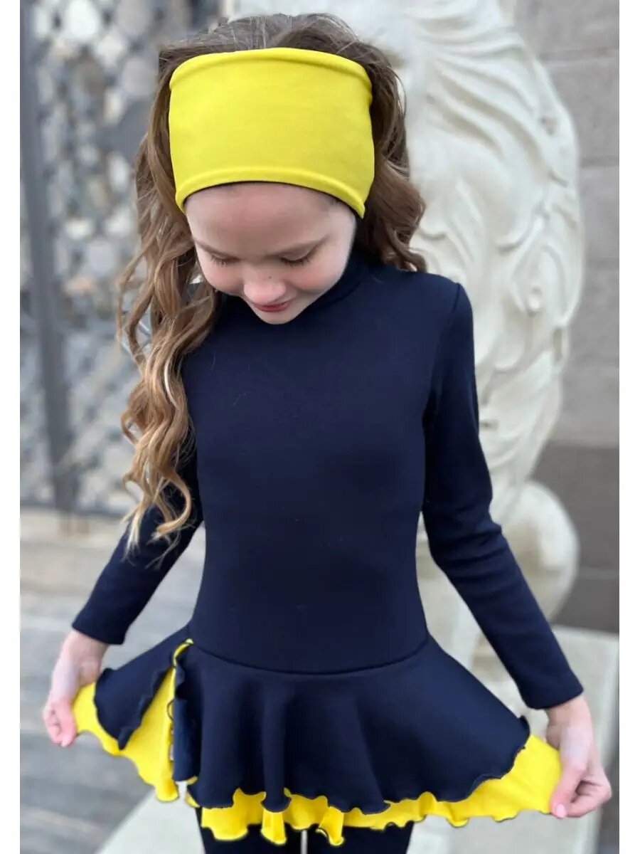 Костюм для фигурного катания Olivi Classic Утепленный комбинезон, размер XXS, темно-синий/желтый