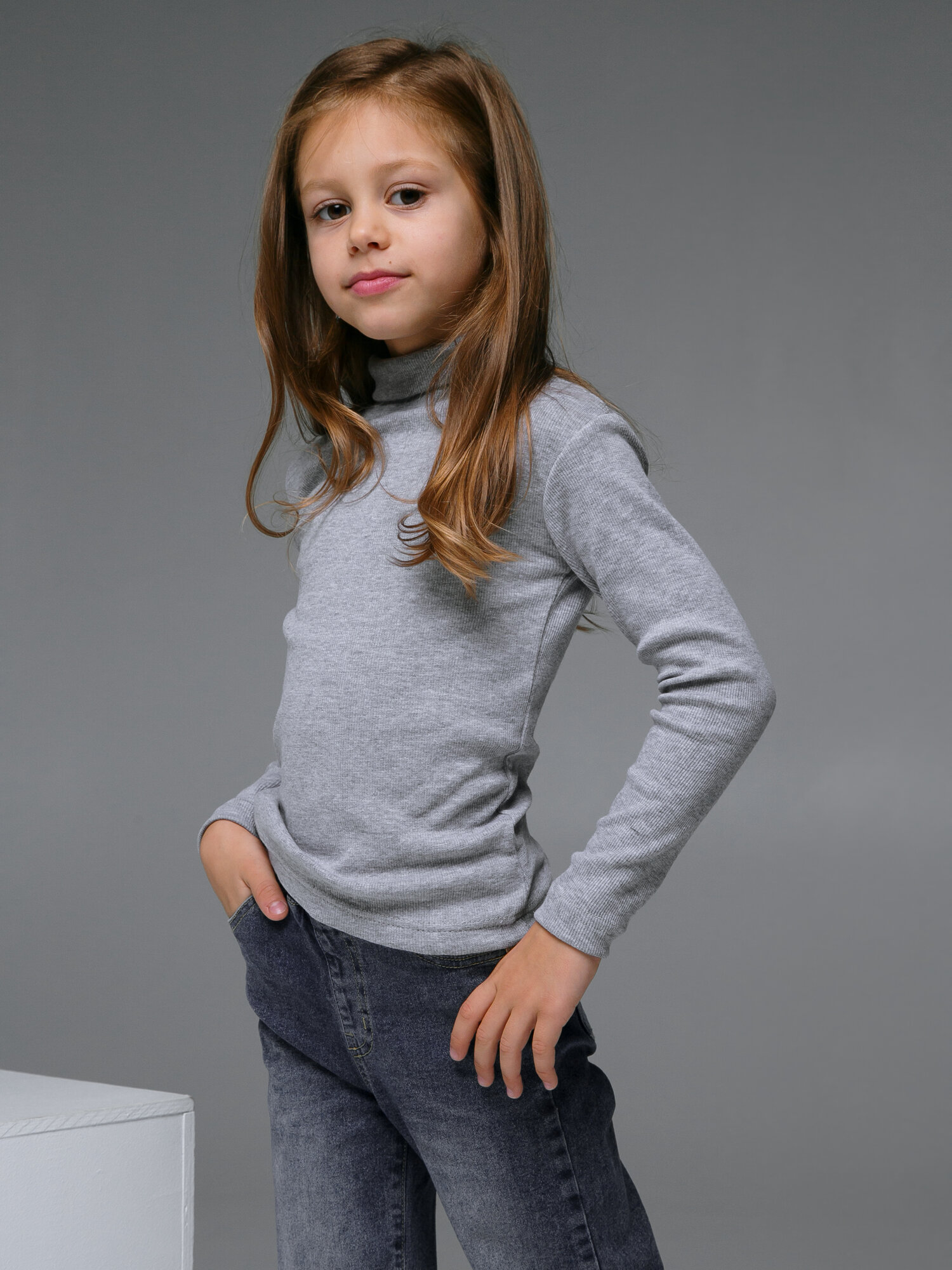 Водолазка Ohana kids, размер 128, св.серый меланж