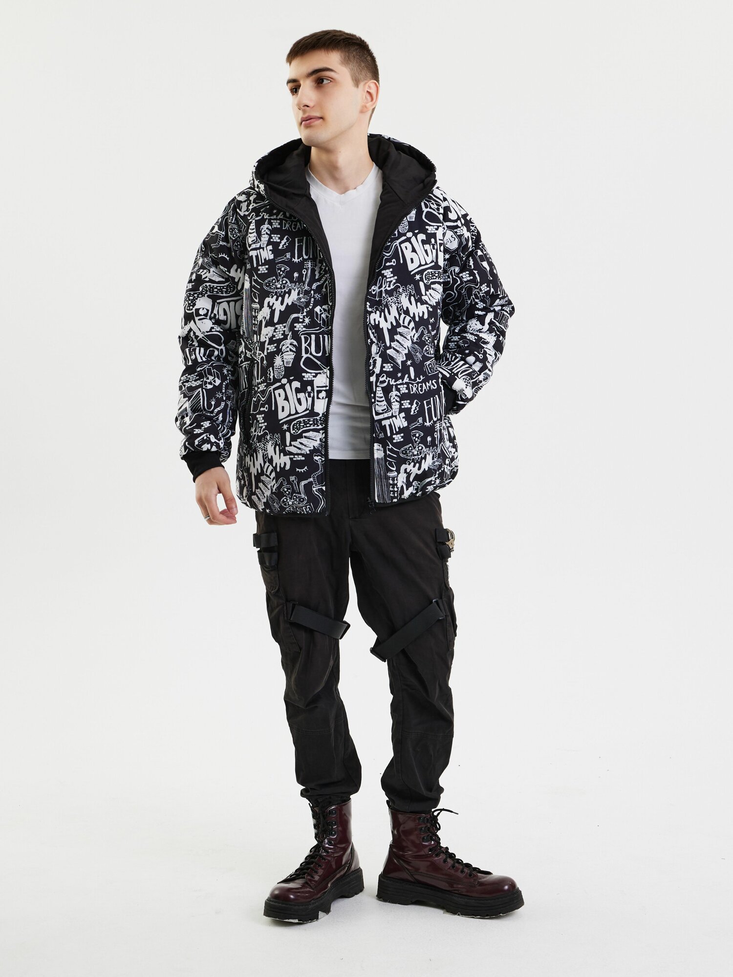 Куртка, размер L, черный, белый