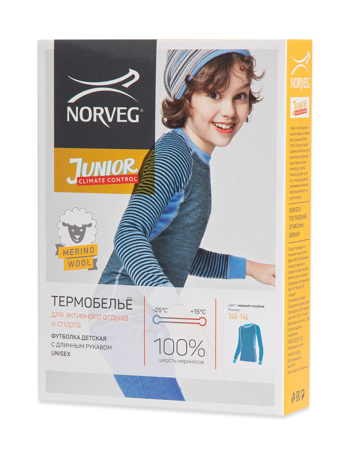 Купить Термофутболка NORVEG, размер 152/158, черный/голубой