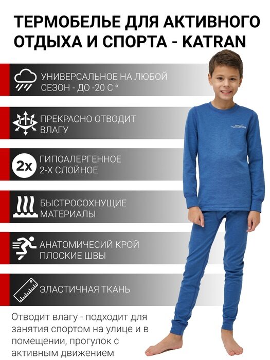 Комплект термобелья KATRAN ЛУФФИ спортивный влагоотводящий, размер 128-134, синий