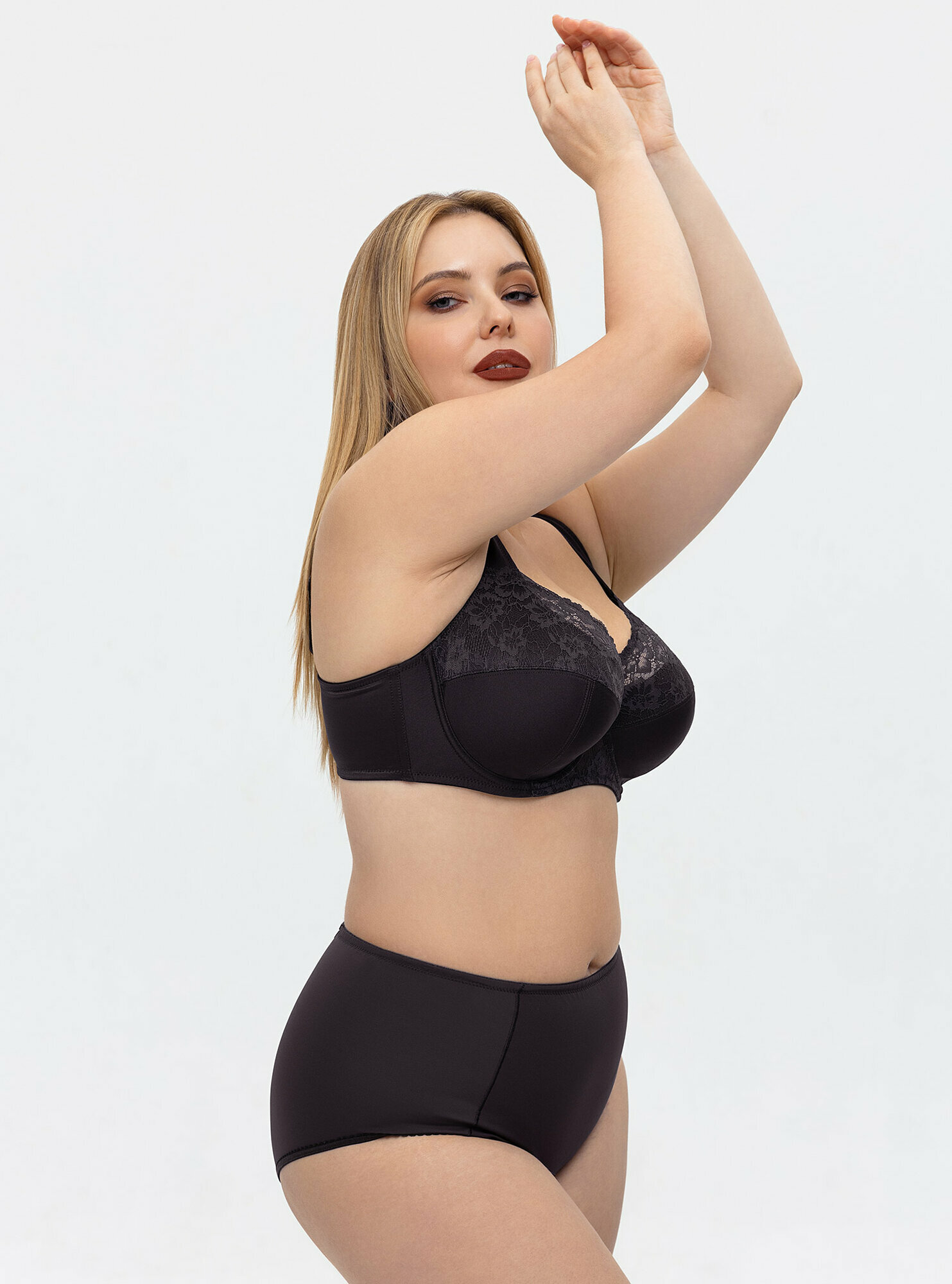 Novika Бюстгальтер Angelina на косточках с принтованным кружевом (70F / черный с бежевым)