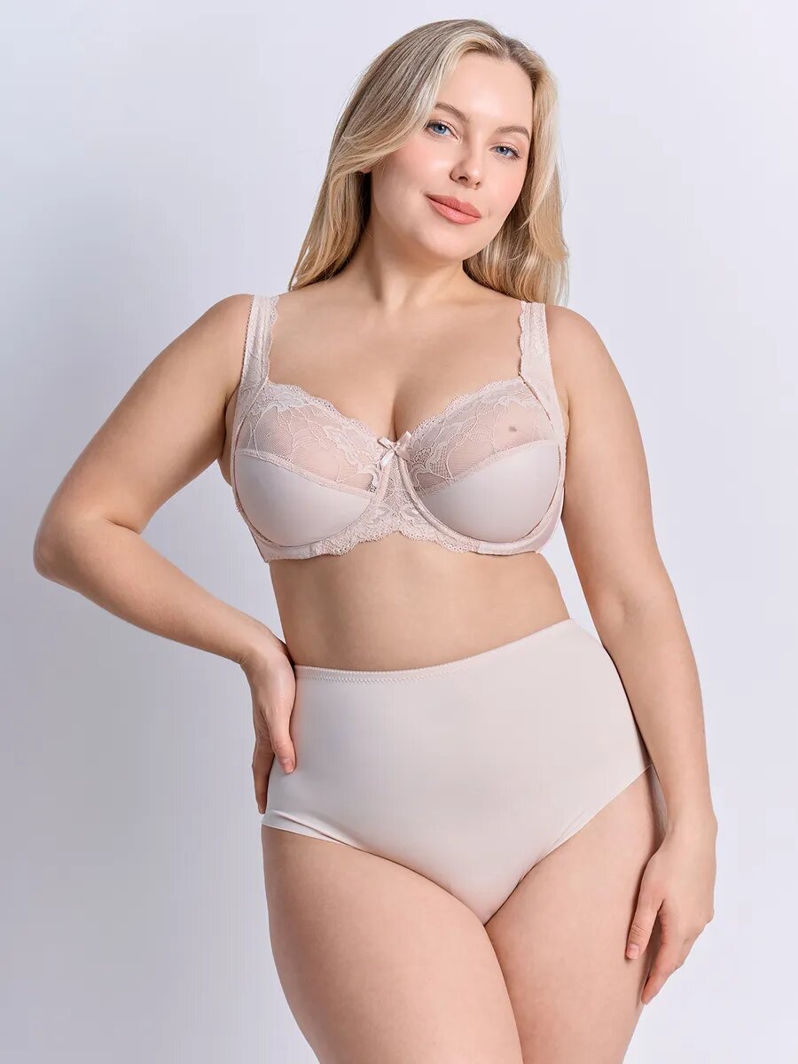 Novika Бюстгальтер Angelina на косточках с принтованным кружевом (70F / черный с бежевым)
