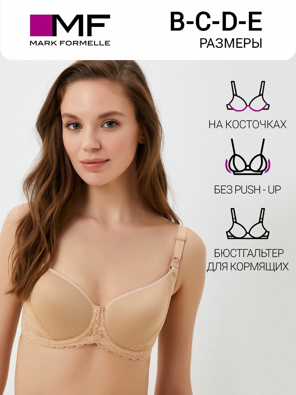 Бюстгальтер MARK FORMELLE Нижнее белье, размер 80B, бежевый, коричневый