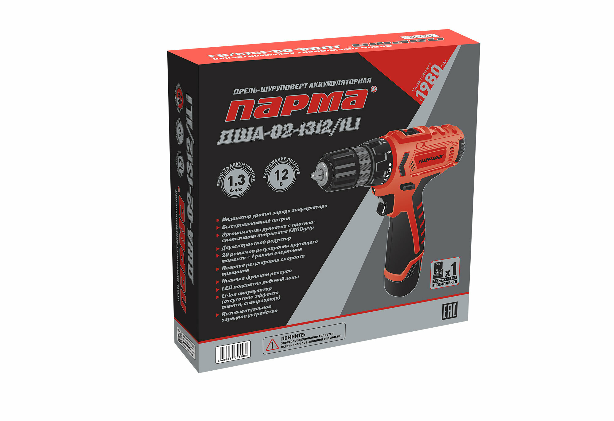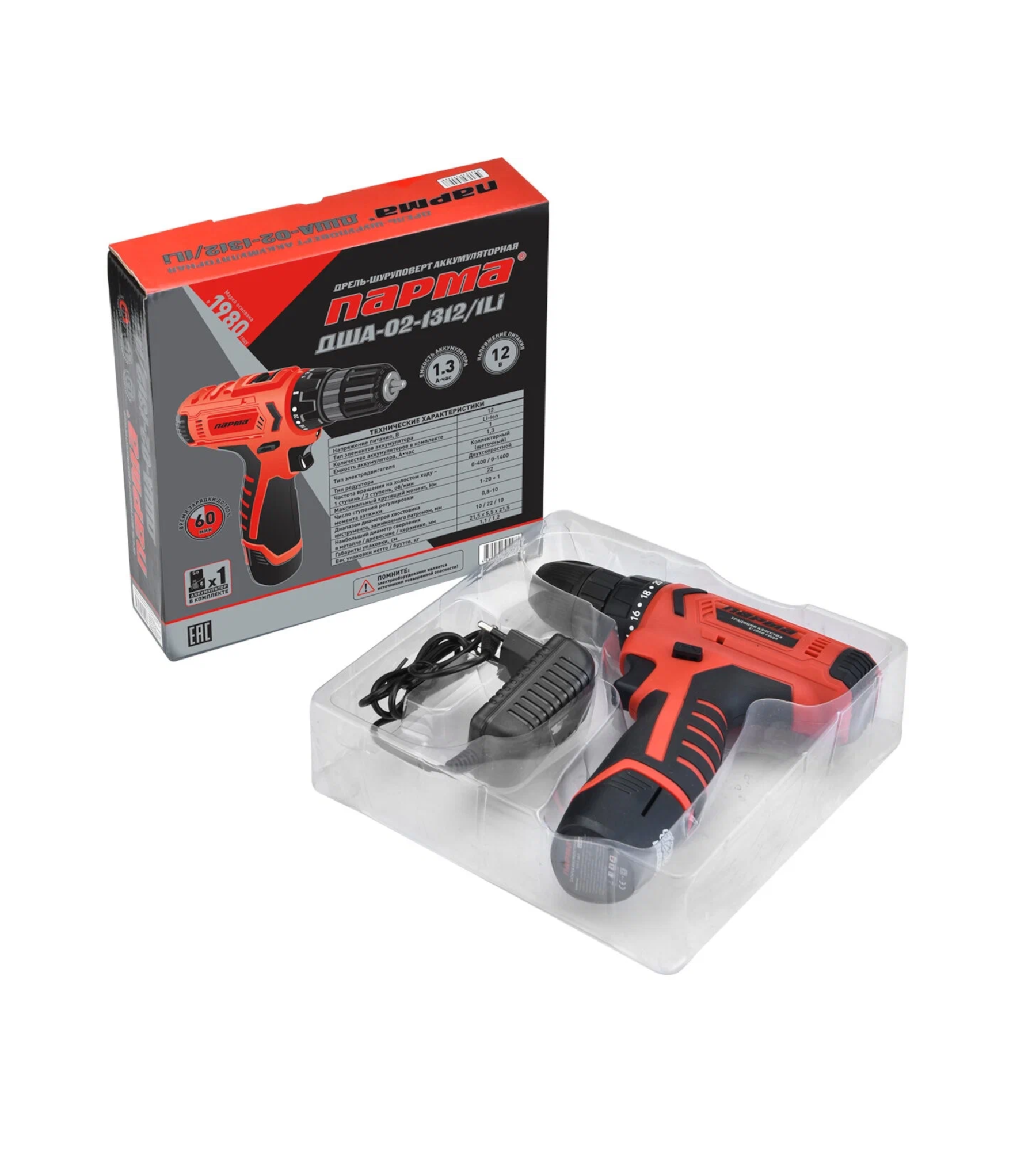 Аккумуляторная дрель-шуруповерт Парма ДША-02-1312/1Li 02.021.00005