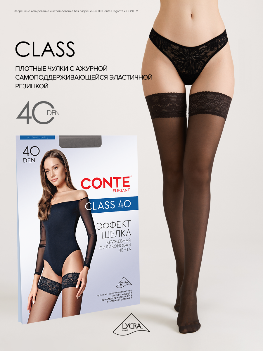 Чулки Conte elegant Class 40 den, LYCRA®, 20 den, размер 3-4, nero/черный