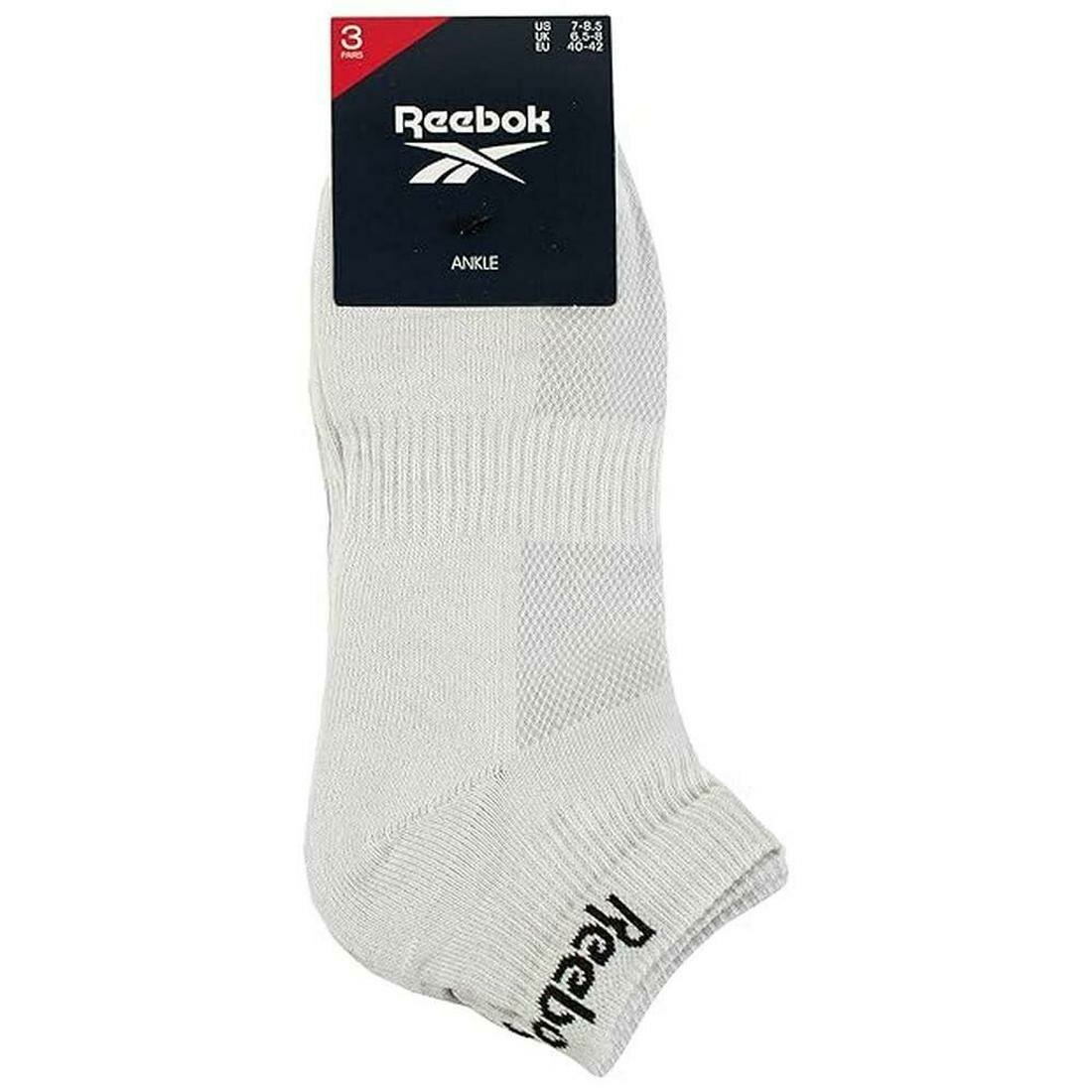 Носки Reebok Ankle Vector, комплект, 3 пары, размер 40/42 EU, серый/белый/черный