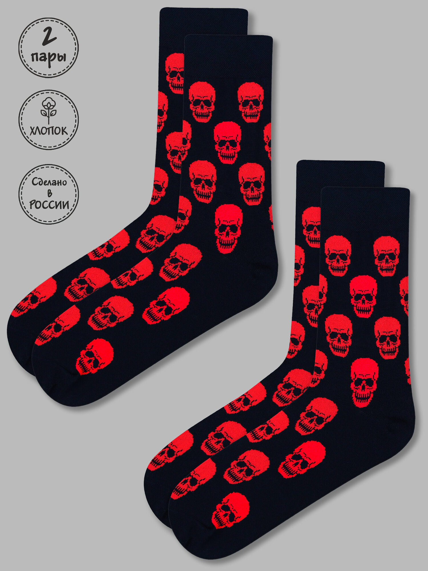 Купить Носки Kingkit, комплект, 2 пары, размер 41-45, черный, красный