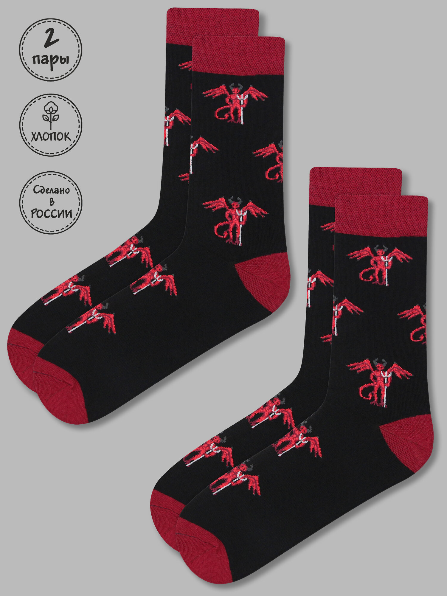 Носки Kingkit, комплект, 2 пары, размер 41-45, черный, красный