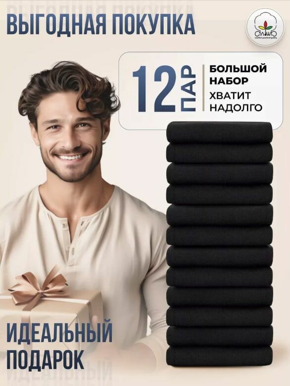 Купить Носки АЛЬША Базовая коллекция, комплект, 12 пар, размер 41-45, черный