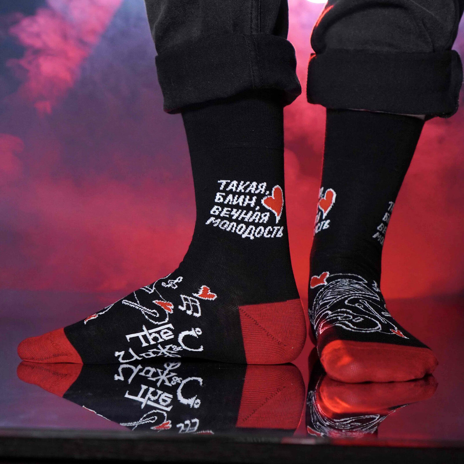 Носки St. Friday Русский Рок - Чиж - Вечная молодость, размер 42-46, белый, черный, красный