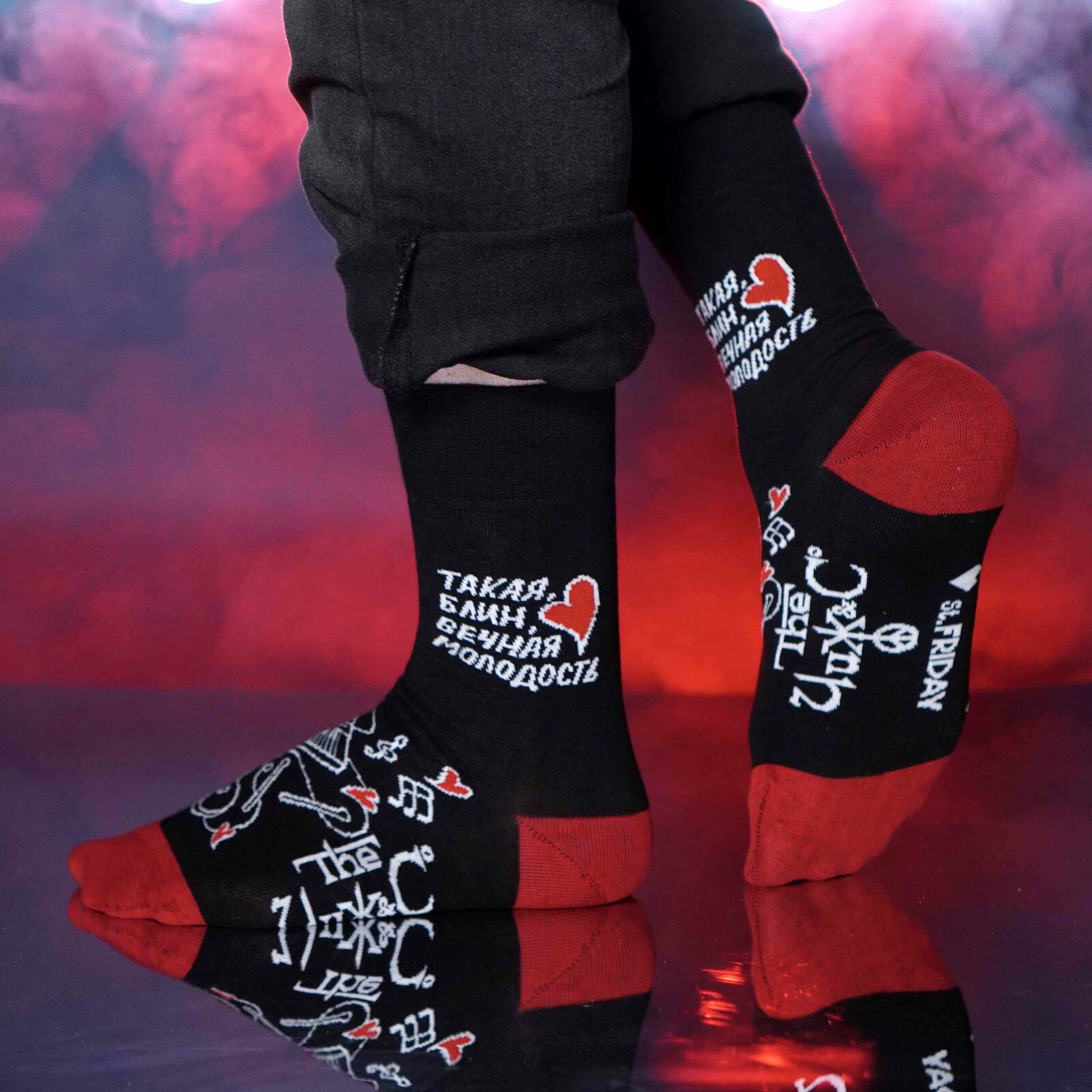 Носки St. Friday Русский Рок - Воскресение - По дороге разочарований, размер 42-46, черный, красный
