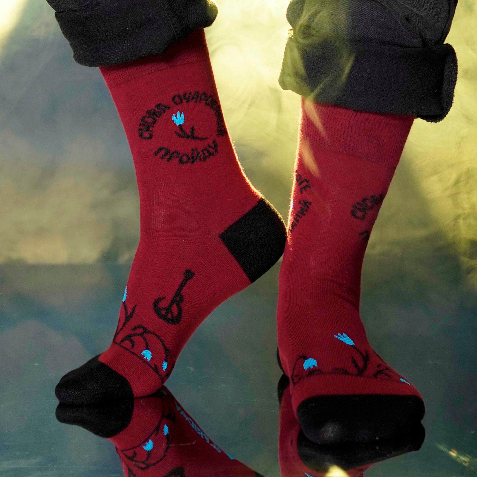 Носки St. Friday Русский Рок - Воскресение - Я привык бродить один, размер 38-41, черный, синий, желтый