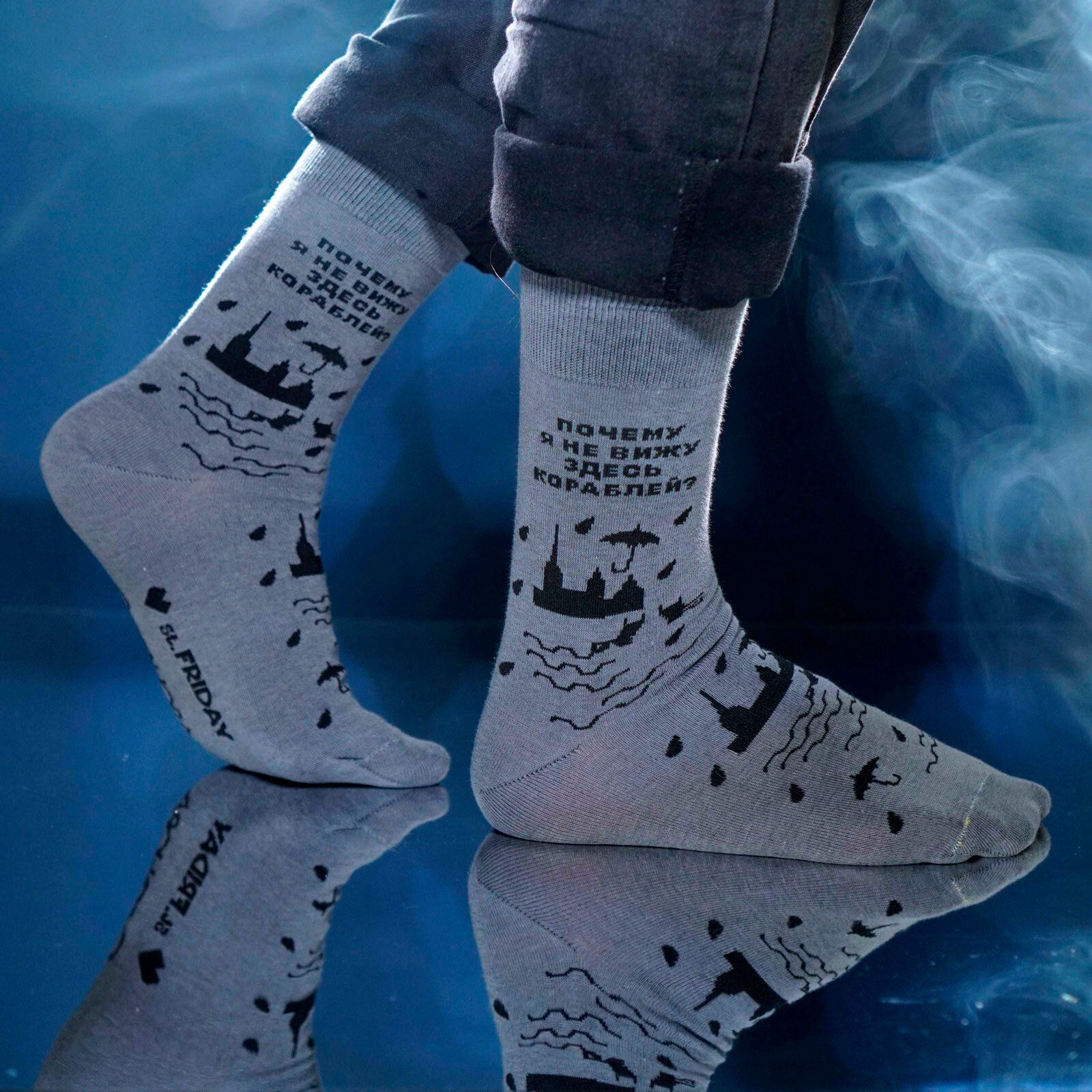 Носки St. Friday Русский Рок - Сурганова - Почему я не вижу кораблей, размер 42-46, черный, серый