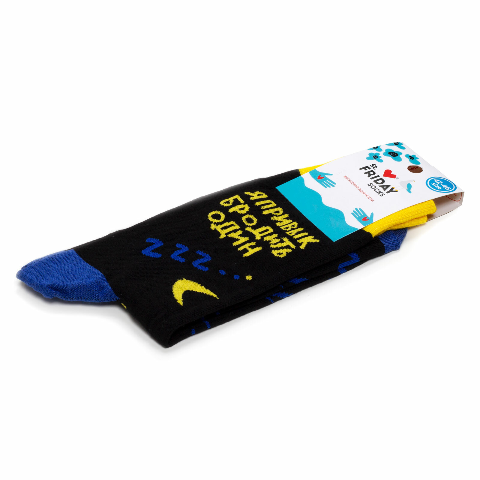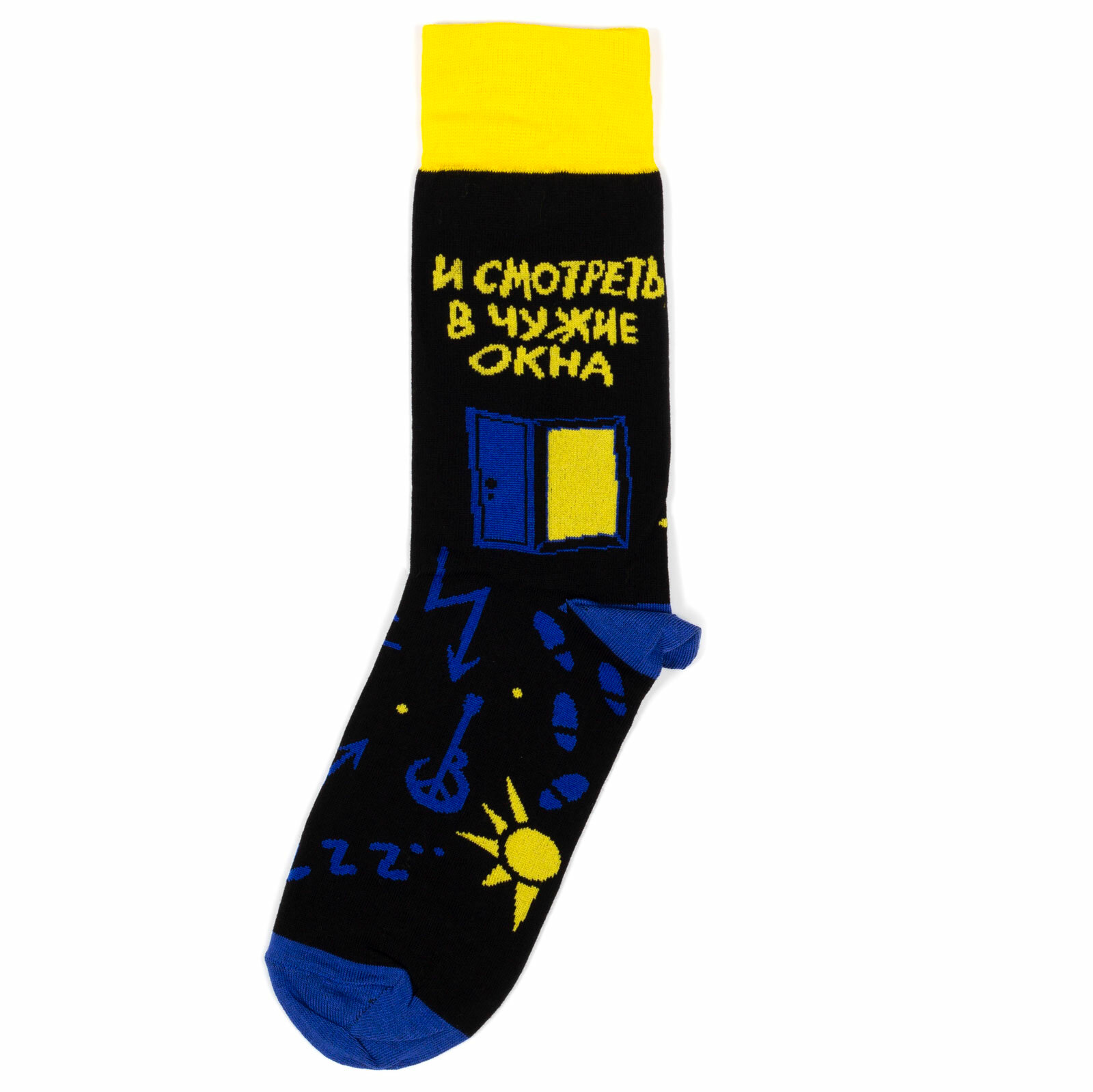 Носки St. Friday Русский Рок - Воскресение - Я привык бродить один, размер 38-41, черный, синий, желтый