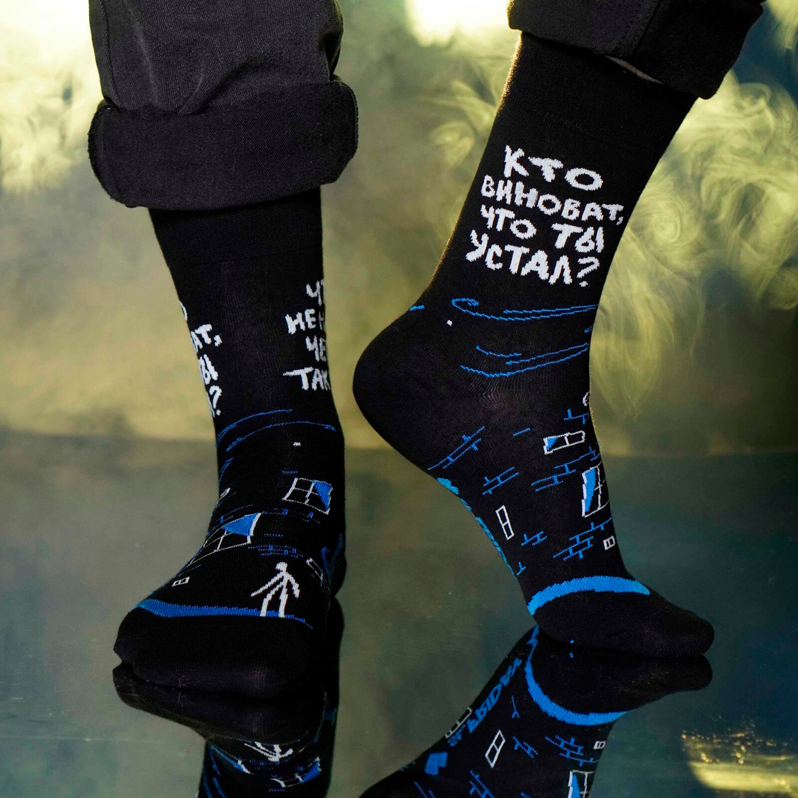 Носки St. Friday Русский Рок - Воскресение - Я привык бродить один, размер 42-46, черный, синий, желтый