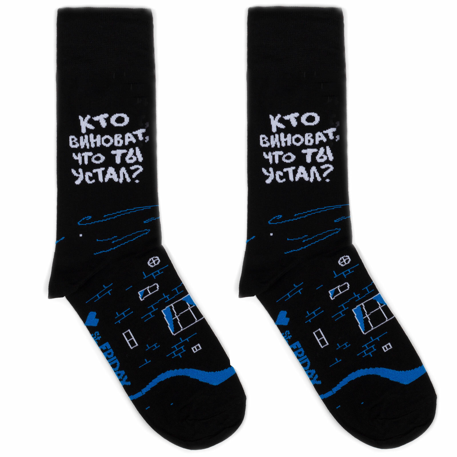 Носки St. Friday Русский Рок - Воскресение - Кто виноват, что ты устал?, размер 42-46, белый, черный